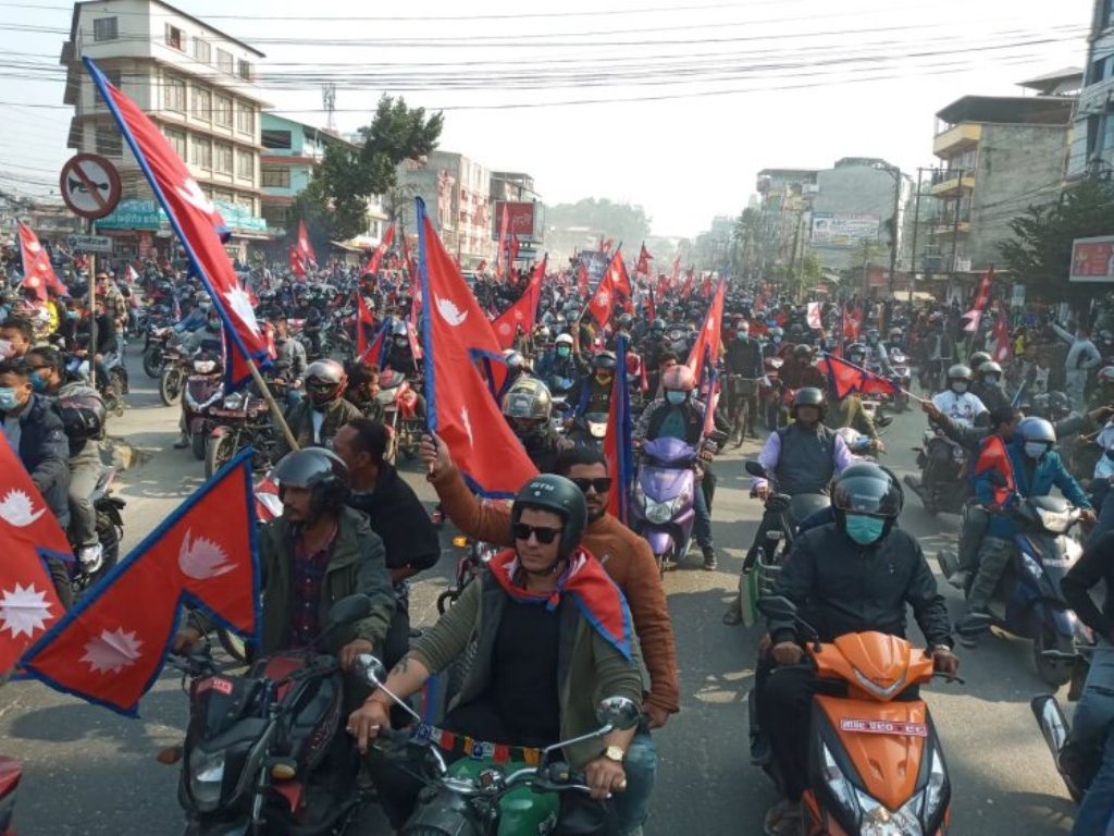 भरतपुरको केन्द्रीय बसपार्कबाट सुरू भएको मोटरसाइकल र गाडीसहितको बृहत र्याली हाकिमचोक हुँदै चौबिसकोठी–पुलचोक–आँपटारी पुगेर बाइपास रोड हुँदै पुनः केन्द्रीय बसपार्क पुगेको थियो । र्यालीमा सहभागीहरुलराजसंस्था पुनःस्थापना गर्नुपर्नेमा जोड दिए । र्यालीमा राजा आऊ देश बचाउ, गणतन्त्र मुर्दावाद, हिन्दुराष्ट्र कायम गरजस्ता नारा लगाएका थिए ।