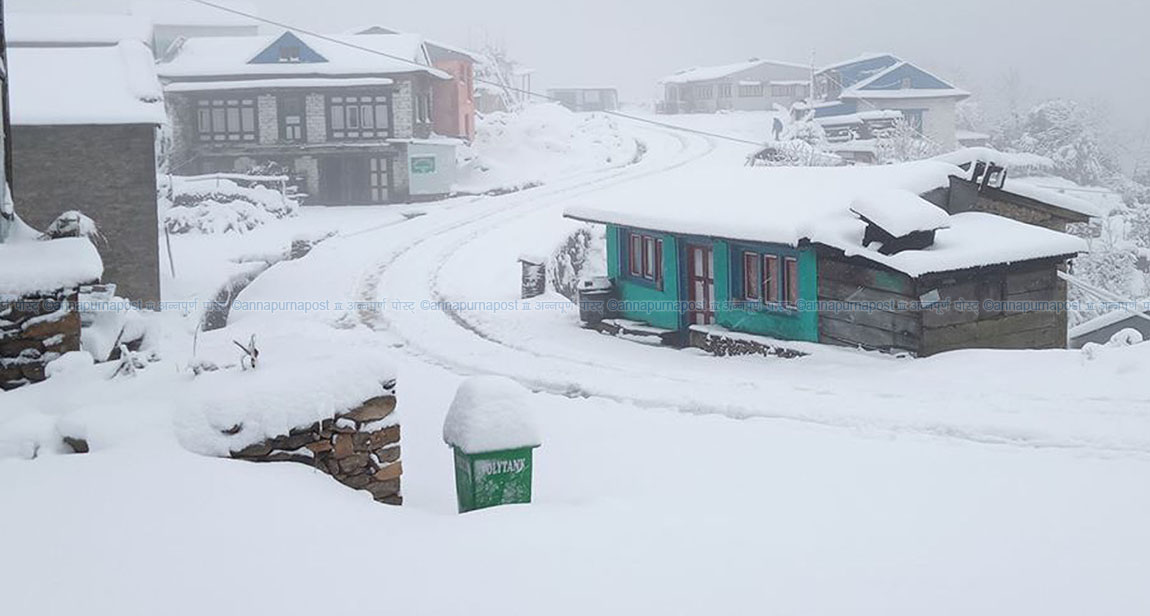 उच्च पहाडी तथा हिमाली भूभागका धेरै स्थानमा हल्कादेखि मध्यम हिमपातको पनि सम्भावना रहेको छ । महाशाखाले आगामी २४ घन्टाका लागि चेतावनी तथा परामर्श जारी गर्दै देशभर चिसो बढ्ने क्रममा रहेकाले चिसोबाट बच्न आवश्यक सुरक्षा एवं सतर्कता अपनाउन सबैमा अनुरोध गरेको छ ।