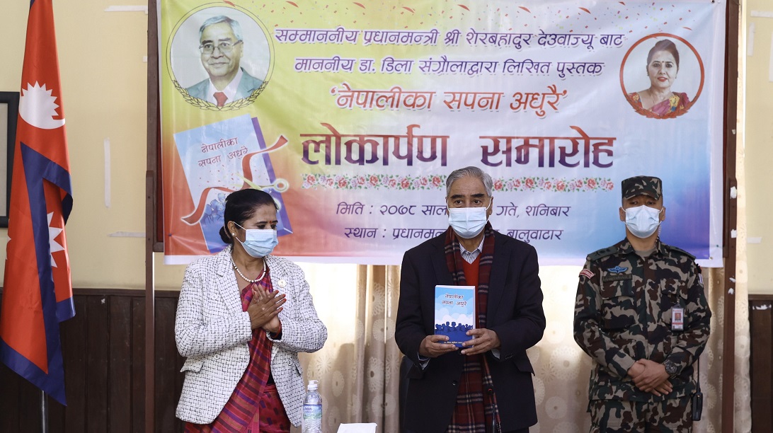 काठमाडौँ । प्रधानमन्त्री शेरबहादुर देउवाले राज्यका रहेक निकाय, तह, तप्का र संरचनामा महिला अधिकारको सुनिश्चितता भएको बताएका छन् । नेपाली कांग्रेसका केन्द्रीय सदस्य डा डिला सङ्र्गौलाद्वारा लिखित ‘नेपालीका सपना अधुरै’ नामक पुस्तकको विमोचन गर्दै उनले महिलालाई आरक्षण अधिकार दिनेमा नेपाल विशेष मुलुक भएको बताए ।