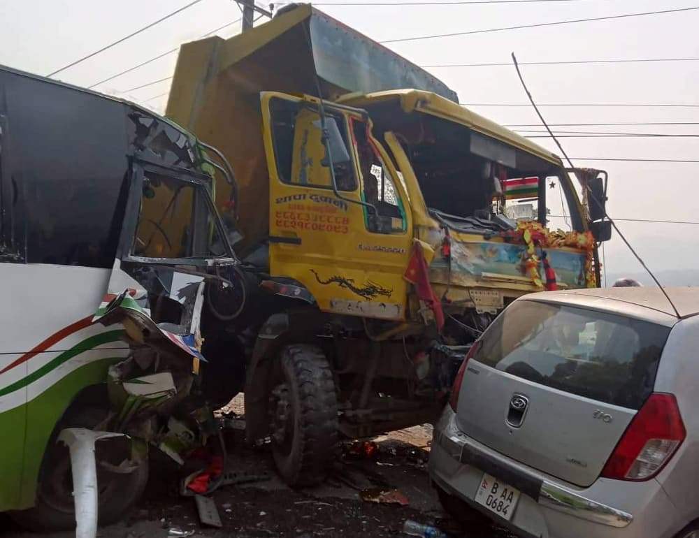 पोखराबाट नारायणगढतर्फ आउँदै गरेको बस ग १ ख ९३०३ नम्बरको यात्रुबाहक बस, मा नारायणगढबाट मुग्लिनतर्फ आउँदै गरेको ना ७ ख २३०० नम्बरको ट्रिपर र बिएए ०६८४ नम्बरको कार ठक्कर खाँदा दुर्घटना भएको जिल्ला प्रहरी कार्यालय चितवनले जनाएको छ ।