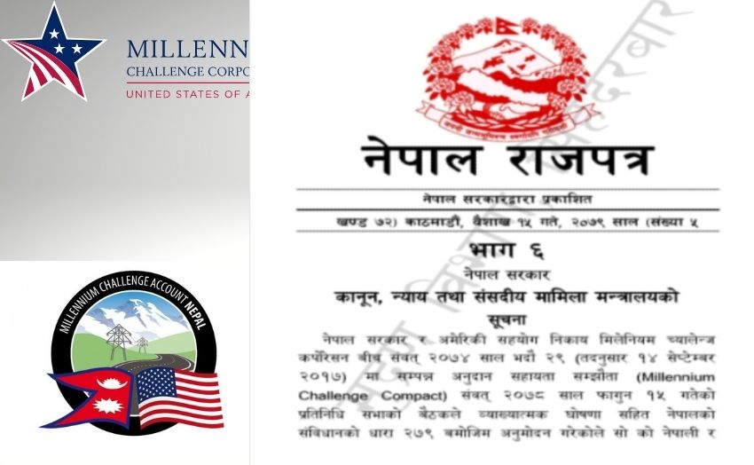 काठमाडौँ । नेपालको आर्थिक तथा भौतिक पूर्वाधारको विकासका लागि अमेरिकी सरकारबाट प्राप्त हुने सहयोग सम्झौता एमसिसी नेपाल राजपत्रमा प्रकाशित भएको छ ।