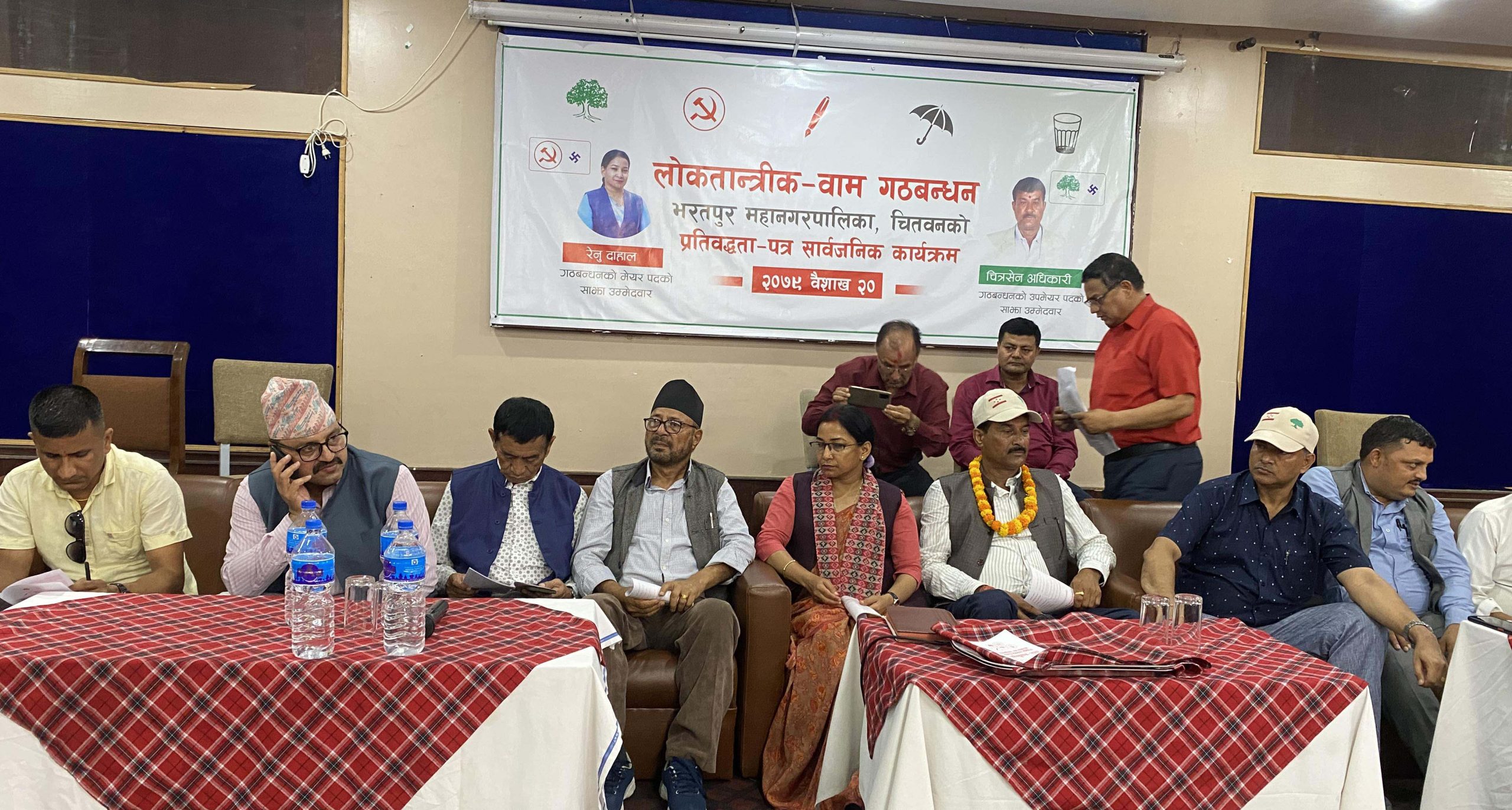 पाँच दलीय गठबन्धनद्वारा भरतपुर महानगरको सङ्कल्प–पत्र जारी