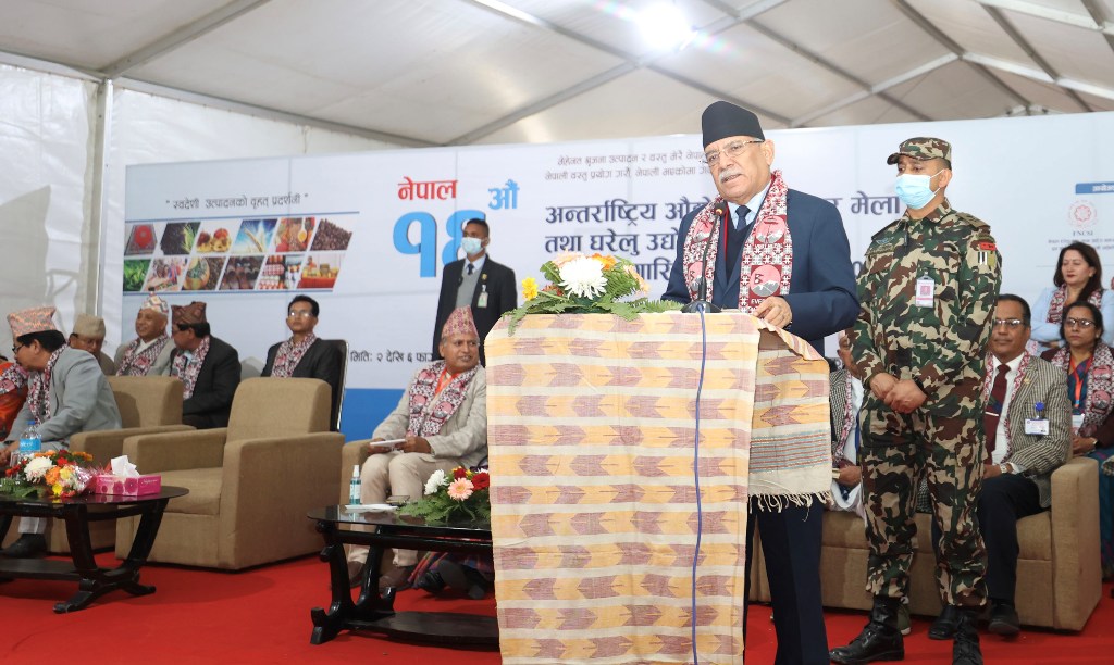 काठमाडौँको भृकुटीमण्डपमा सुरु भएको ‘१६ औँ अन्तर्राष्ट्रिय औद्योगिक व्यापार मेला तथा घरेलु उद्योग महोत्सव र छैटौँ प्राङ्गारिक कृषि मेला–२०७९’ को उद्घाटन कार्यक्रममा प्रधानमन्त्री दाहालले साना तथा घरेलु उद्योगका लागि सहजरुपमा कर्जा पाउने र त्यस्ता उद्योगबाट उत्पादित वस्तुको प्रवर्द्धनका लागि सरकारले केही महत्त्वपूर्ण नीतिगत व्यवस्था गर्न लागेको बताए ।