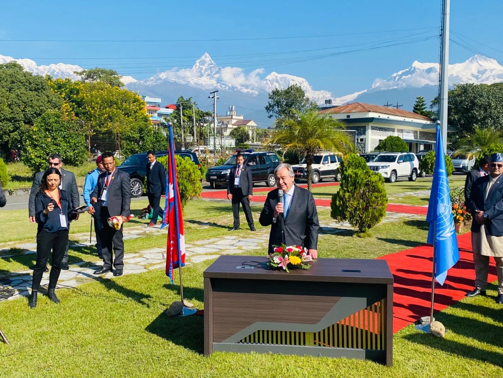 उनले जलवायु परिवर्तनका कारण वातावरणीय सन्तुलन खल्बलिन गई बाढीपहिरालगायत प्राकृतिक विपद्को नकारात्मक असर भोग्न स्थानीयवासी बाध्य हुनु परेको बताए । महासचिव गुटेरेसले जलवायु परिवर्तनको प्रत्यक्ष असर ब्यहोरिरहेको नेपाललगायत देशलाई अन्तर्राष्ट्रिय समर्थन चाहिने पनि उल्लेख गरे ।