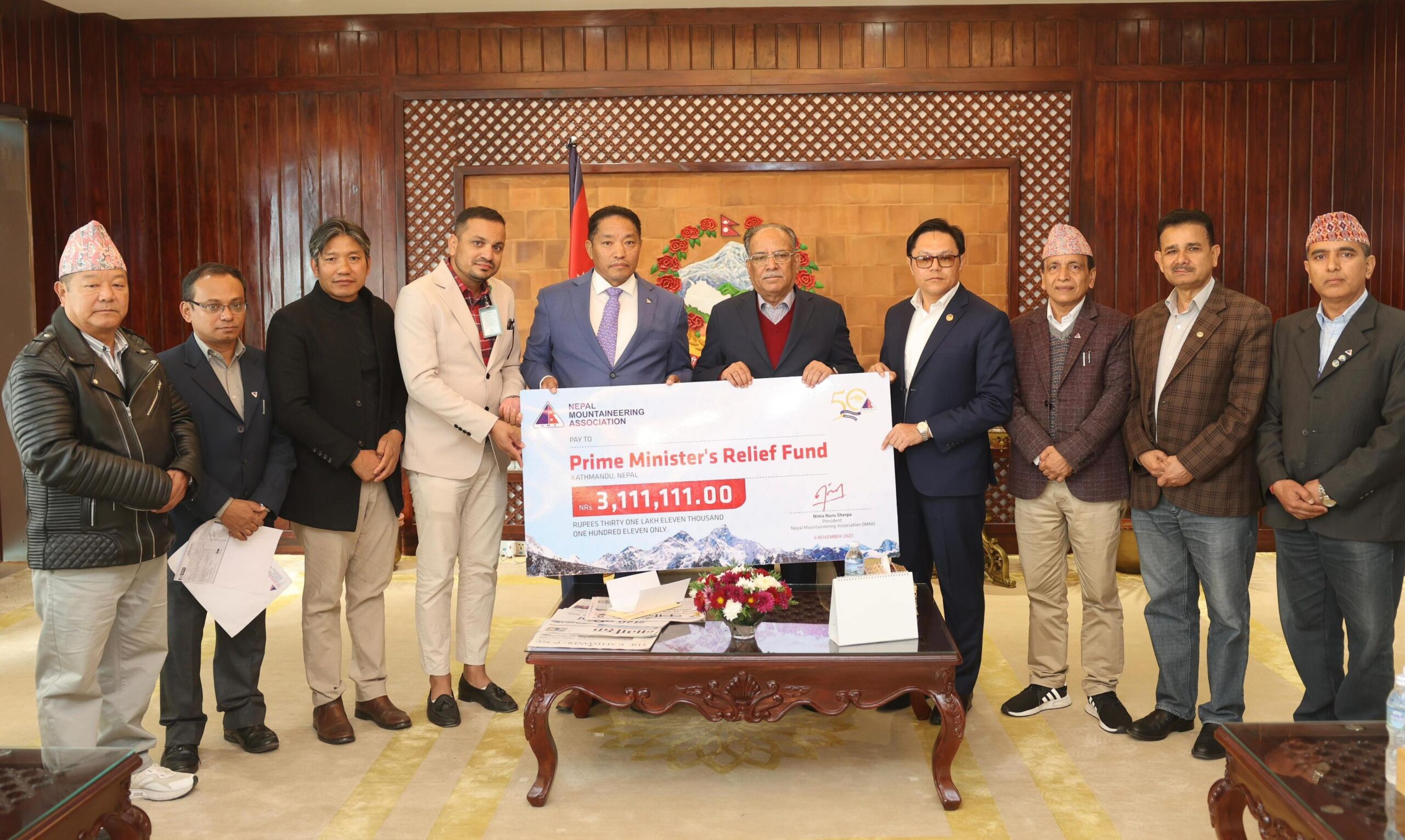 बुधबार बिहान बालुवाटारमा पर्यटनमन्त्री सुदन किरातीको नेतृत्वमा आएको प्रतिनिधिमण्डलले प्रधानमन्त्री पुष्पकमल दाहाल ञप्रचण्डझ लाई भेटी सहयोग रकम हस्तान्तरण गरेका हुन् ।