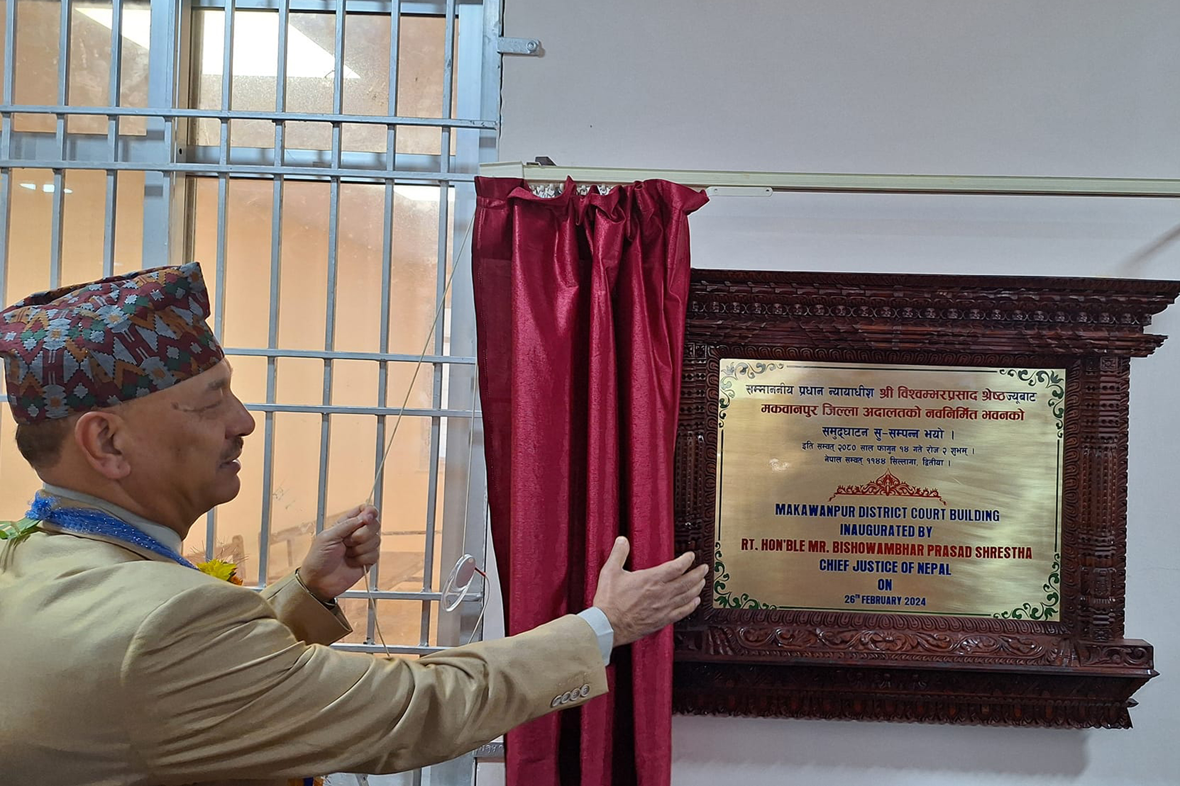 मकवानपुर । प्रधानन्यायाधीश विश्वम्भरप्रसाद श्रेष्ठले न्यायपालिकालाई समय सापेक्ष गतिशील, गुणस्तरीय र सुशासनतर्फ अभिवृद्धि गर्न भौतिक पूर्वाधार विकास नै न्यायका लागि अभिन्न अङ्ग बनेको बताएका छन् ।