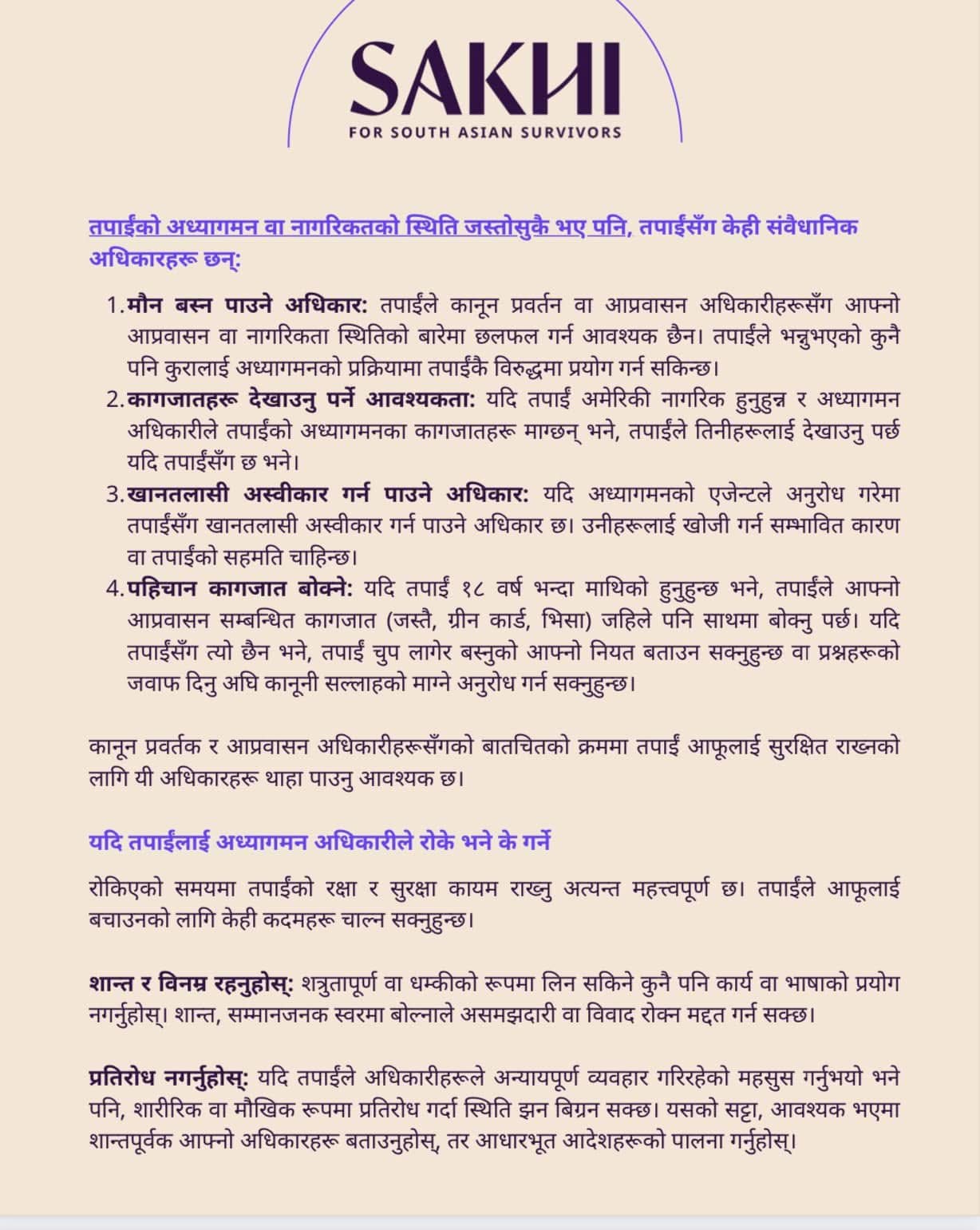 तपाईलाई इमिग्रेशन प्रहरीहरुले प्रश्न सोध्न रोक भने के गर्ने यसवारेमा गैर सरकारी संस्था सखीले वितरण गरिएको यो जानकारी तपाईलाई काम लाग्न सक्छ ।