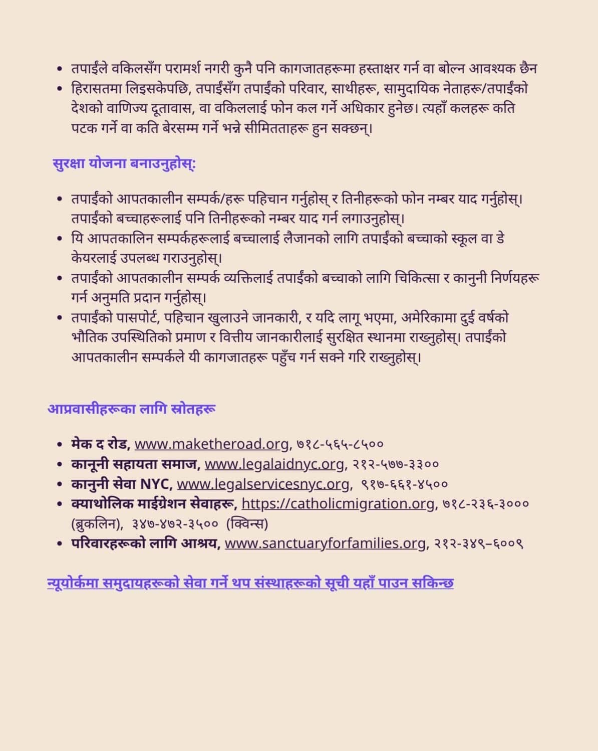 ट्रम्प प्रशासनले अवैध रुपमा अमेरिका बस्ने माथिको कारवाहीलाई केही तिव्रता दिएको मात्र हो । पहिला पनि यस्तो कारवाही हुदैं आएको थियो । यति हुदां हुदैं पनि अहिलेको अवस्थामा गैर कानुनी रुपमा यहां वस्दै आउनु भएको छ, श्रम स्विकृत विना काम गर्दै आउनुभएको छ भने केही सतर्क भने हुनुपर्छ ।