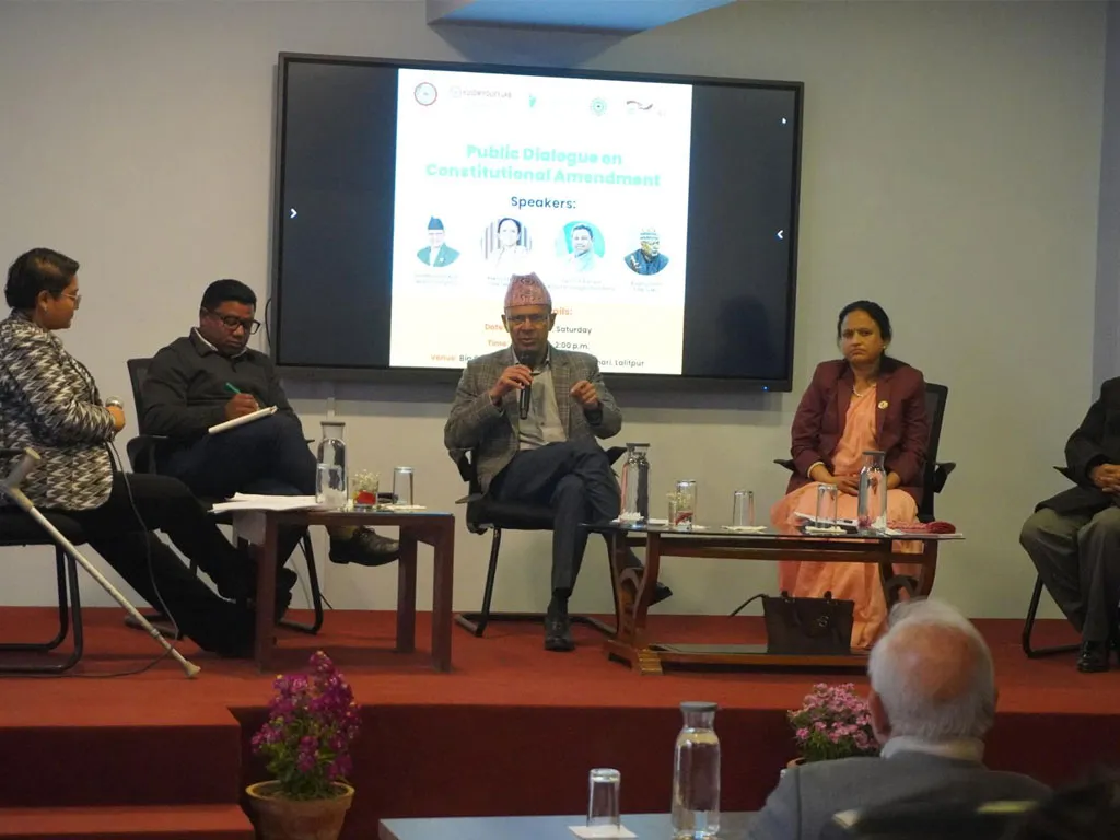 आज आयोजित संविधान संशोधनमा सार्वजनिक संवाद कार्यक्रममा नेपाली काँग्रेसका नेता डा. मिनेन्द्र रिजाल, नेकपा (एमाले) नेता रुघुजी पन्त, पूर्वसञ्चारमन्त्री रेखा शर्मा र राष्ट्रिय स्वतन्त्र पार्टी (रास्वपा) का प्रमुख सचेतक सन्तोष परियारलगायतले संविधान संशोधन हुनुपर्ने साझा धारणा व्यक्त गरेका हुन् ।