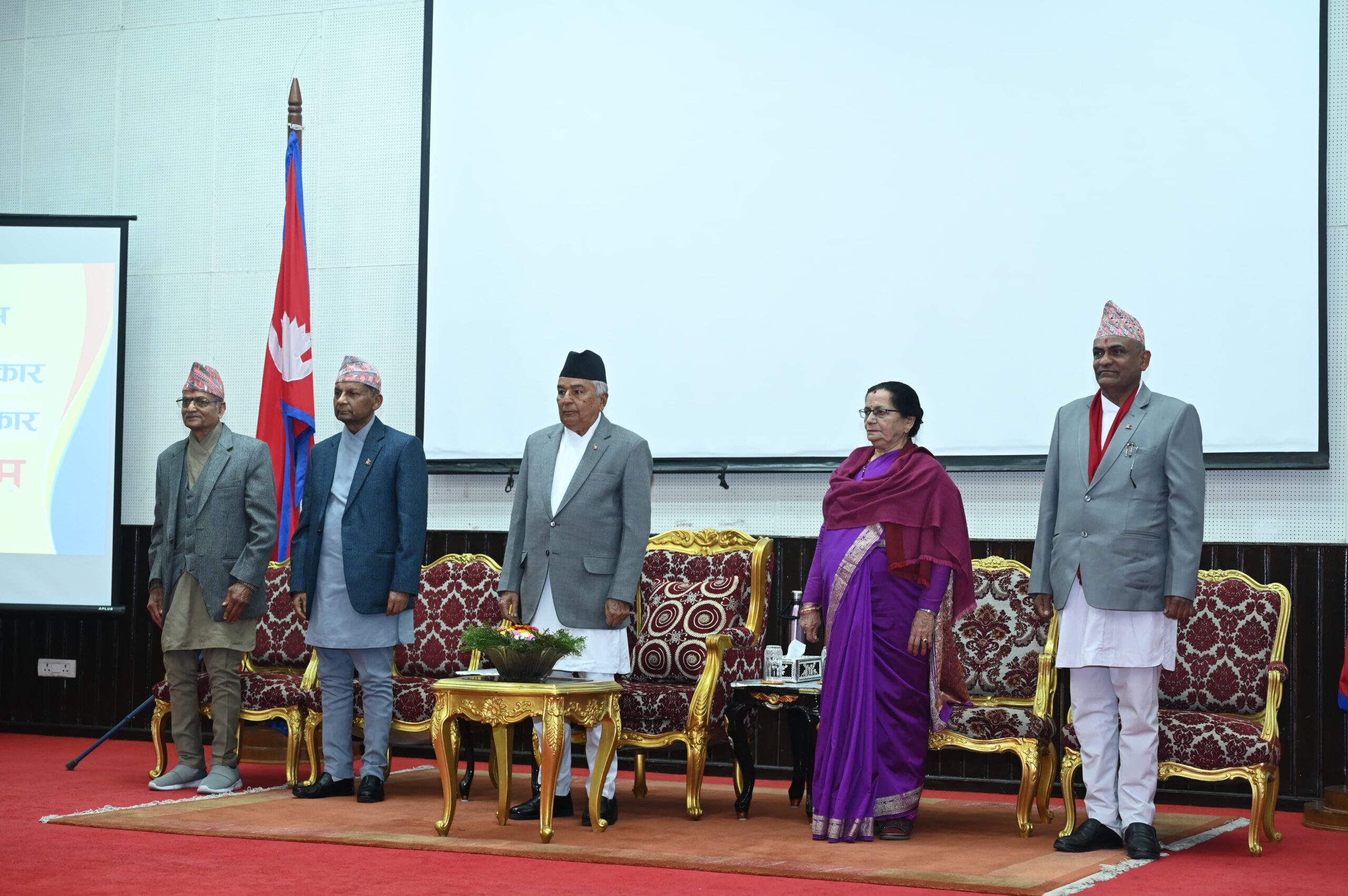 काठमाडौँ । राष्ट्रपति रामचन्द्र पौडेलले नैतिक मूल्य–मान्यता, सदाचार र योग सभ्य समाजको मेरुदण्ड भएको बताएका छन् । सर्वोदय सेवाश्रमद्वारा स्थापित नरकान्त योग राष्ट्रिय पुरस्कार तथा भैरव सदाचार राष्ट्रिय पुरस्कार प्रदान कार्यक्रमलाई सम्बोधन गर्दै उनले स्थायित्व, समृद्धि र समतामूलक समाज निर्माणका लागि यी गुणहरू अनिवार्य भएको बताए ।