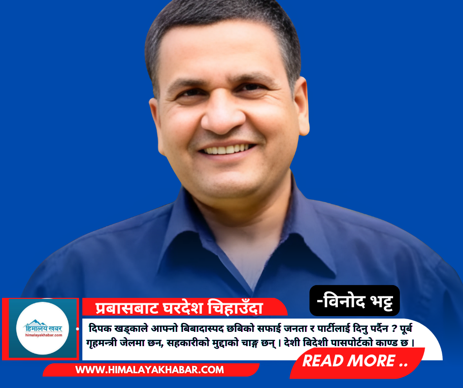 दिपक खड्काले आफ्नो बिबादास्पद छबिको सफाई जनता र पार्टीलाई दिनु पर्दैन ? पूर्ब गृहमन्त्री जेलमा छन, सहकारीको मुद्दाको चाङ्ग छन् । देशी बिदेशी पासपोर्टको काण्ड छ । बिपक्षमा बस्दा नेपाली कांग्रेका सांसदहरुले बोलेका शब्द शब्दका भिडियोहरु मानिसहरुका फोनफोनमा छन । गृहमन्त्री रमेश लेखकको हिजोको स्वच्छ छबिको पहिचानको परिक्षा दिन ढिलो गर्नुहुन्न । यदि अहिले उठेका मुद्दाहरु कथम कथाचित प्रमाणित भयो भने नेपाली कांग्रेसको नियतिमै खोट लाग्नेछ ।
