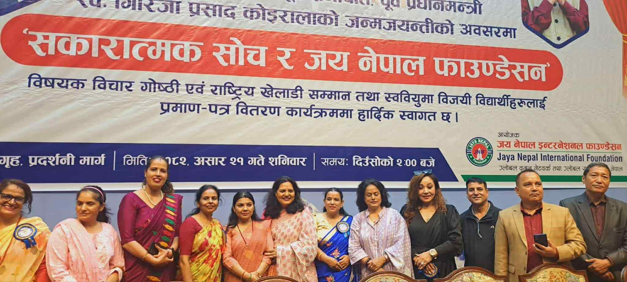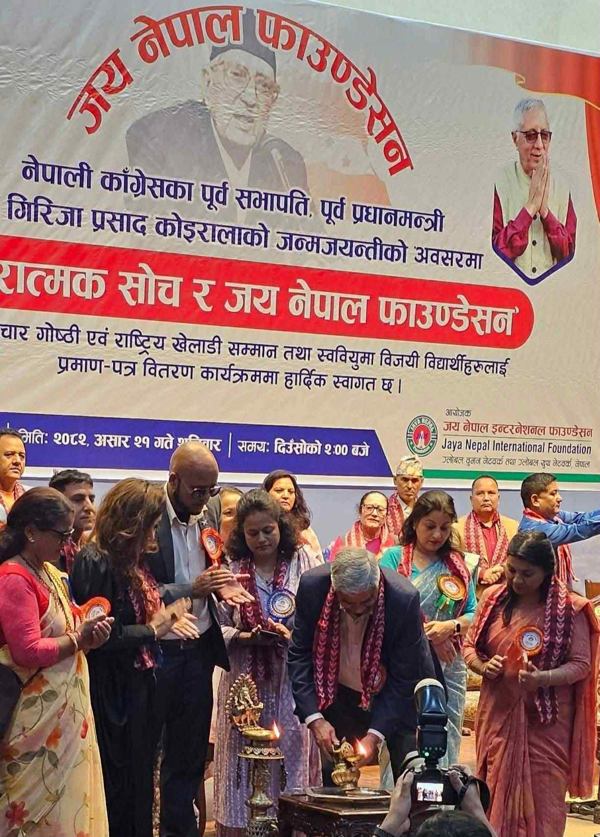 काठमाडौं । पूर्वप्रधानमन्त्री गिरिजा प्रसाद कोइरालाको जन्मजयन्तीको अवसरमा जय नेपाल फउण्डेशनले ‘सकारात्मक सोच र जय नेपाल फउण्डेशन’ कार्यक्रम आयोजना गर्यो । कार्यक्रमका प्रमुख वक्तामा नेपाली कांग्रेसमा सभापति शेरबहादुर देउवा थिए। उनले कोइराला लडाकु व्यक्ति भएको उल्लेख गरे ।