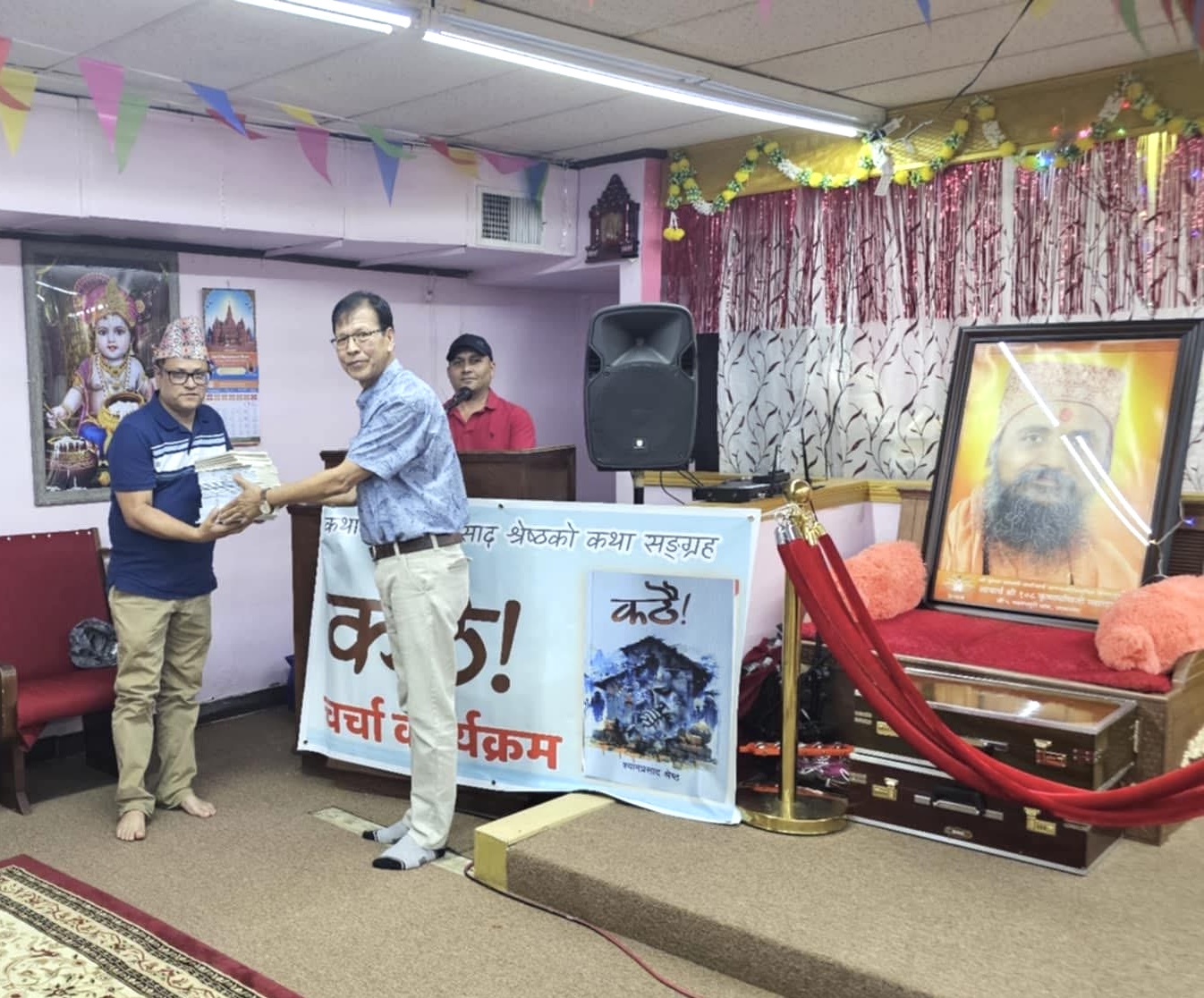 ड्यालस स्थित श्रीकृष्ण प्रणामी हिन्दू समाजको आयोजनामा भएको चर्चा कार्यक्रममा कथाकार श्रेष्ठले कथासङ्ग्रह ”कठै !” का बारेमा जानकारी गराएका थिए।
