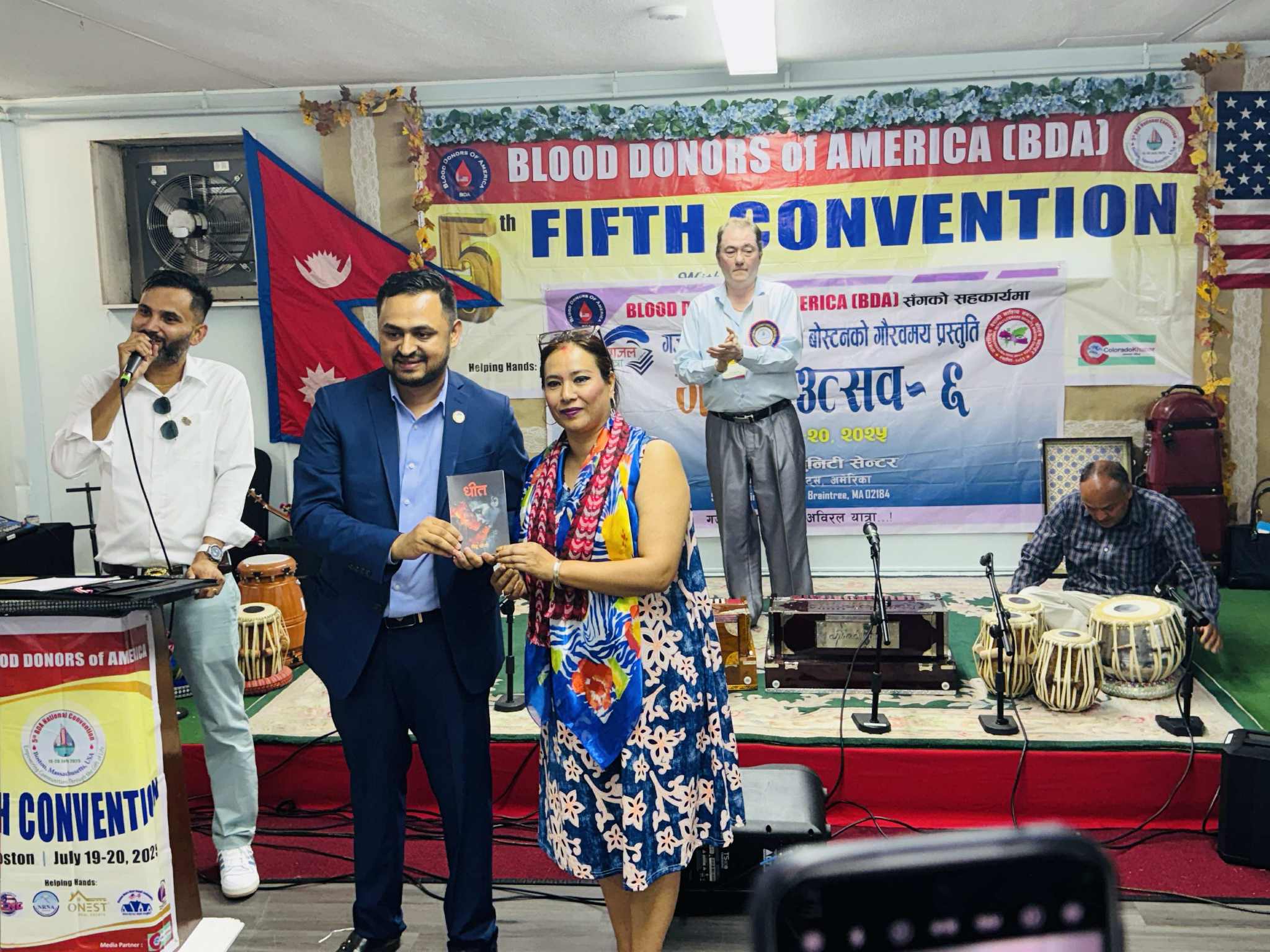 अमेरिका, बोस्टन। ‘रक्तदान, जीवन दान’ भन्ने उक्तिलाई संस्थाको मूल मन्त्र बनाएर परोपकारी अभियानमा जुट्दै आइरहेको ब्लड डोनर्स अफ अमेरिका(बिडिए)को पाँचौं अधिवेशन सम्पन्न भएको छ। अमेरिकाको म्यासाच्युसेट्स राज्यको ब्रेनट्री स्थित नेपाली सामुदायिक भवनमा आयोजित पाँचौं अधिवेशन गत जुलाई २०,२०२५ आइतबार सम्पन्न भएको हो।