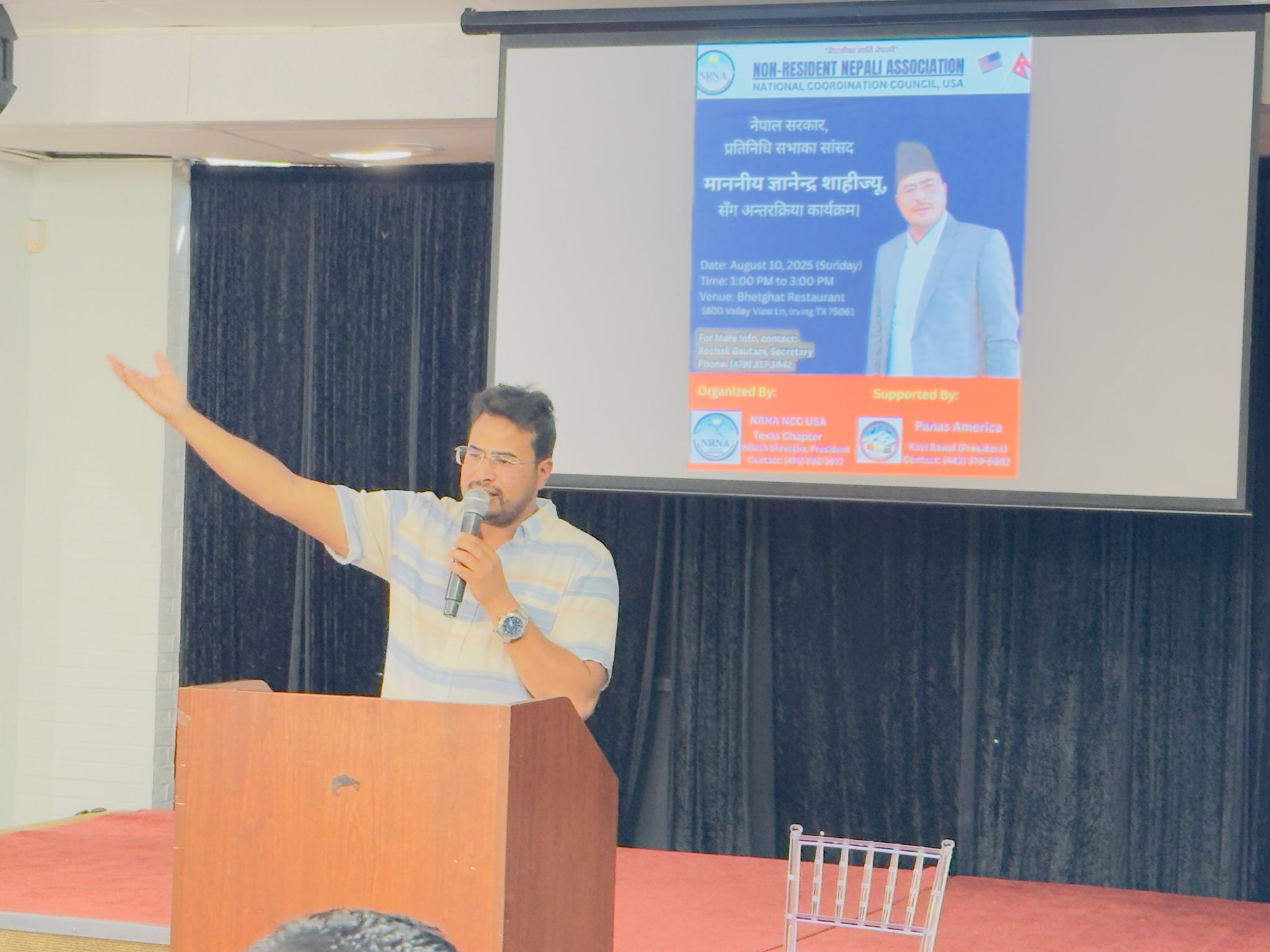 ड्यालस (टेक्सस) । राष्ट्रिय प्रजातन्त्र पार्टीका प्रवक्ता तथा संसदीय दलका सचेतक ज्ञानेन्द्र शाहीले सांसदसँग वडाध्यक्षको जति बजेट र अधिकार पनि नहुने गरेको गुनासो गरेका छन् ।