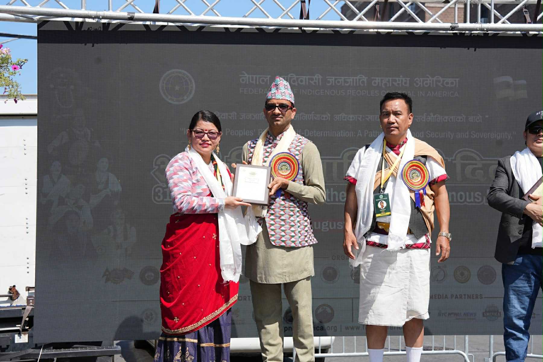 ३१ औँ विश्व आदिवासी दिवशको अवसर पारेर यो वर्ष नेपाल आदिवासी जनजाति महासंघ अमेरिका फिप्नाले आदिवासी समुदायको विभिन्न क्षेत्रमा विषेश योगदान गरेका तीन जनालाई सम्मान गरेको छ । सम्मानित हुनेहरुमा सञ्चारकर्मीद्वयय मच्छेदेवी गुरुङ र खड्काबहादुर पुलामी (बिक्की) रहेका छन् भने फिल्मकर्मी दलप्रसाद लिङ्देन रहेका छन् । उनीहरुलाई प्रमुखअतिथि महावाणिज्यदूत दधिराम भण्डारी र फिप्नाका अध्यक्ष तोरण गुरुङले सम्मान पत्र प्रदान गरेका थिए ।