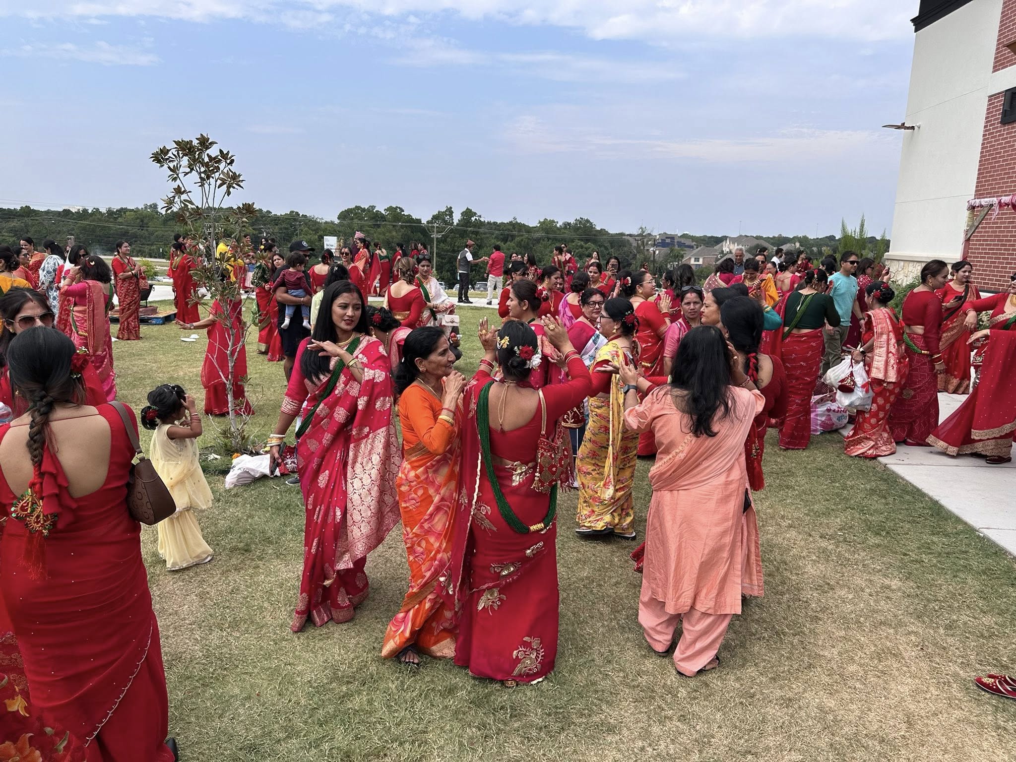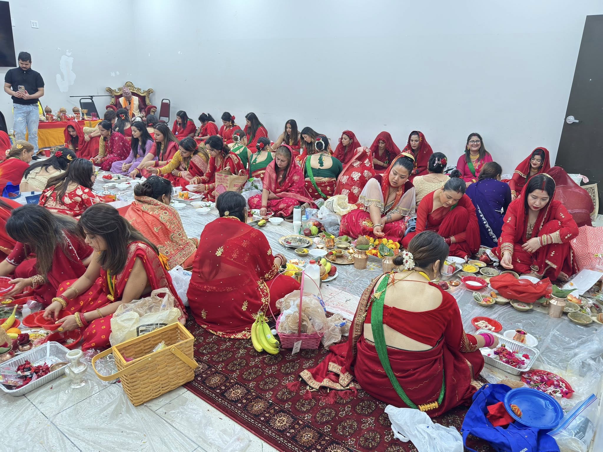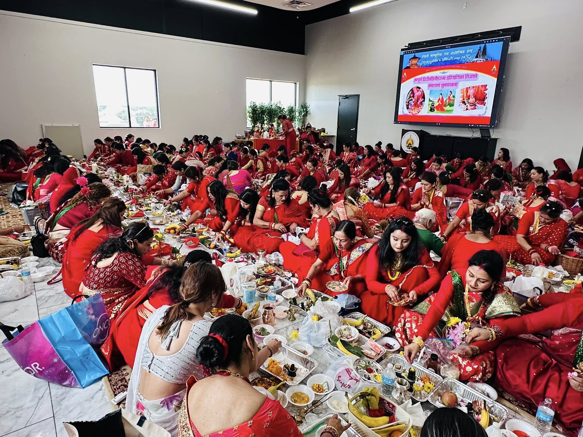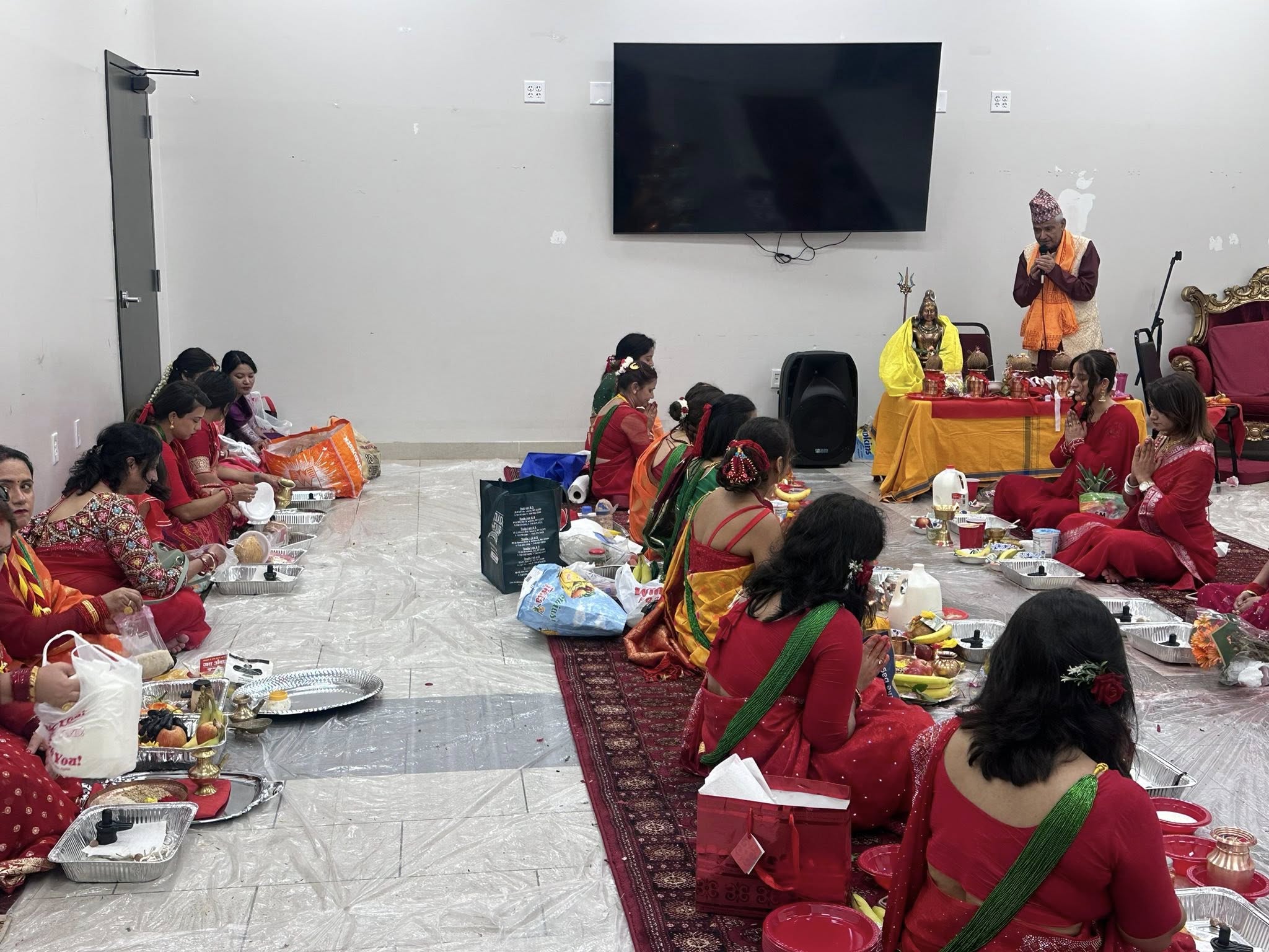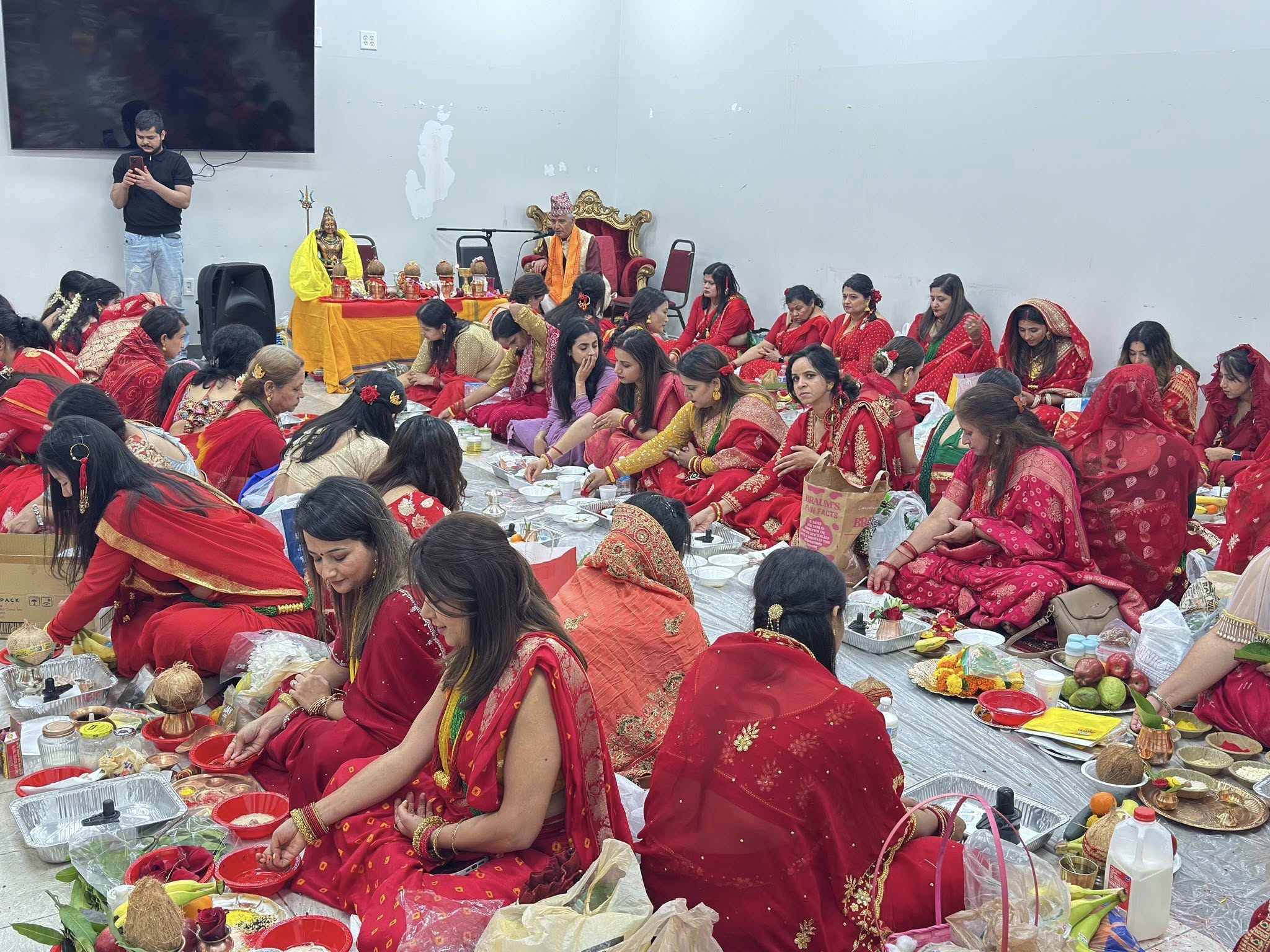 अमेरिकाको ड्लासमा तीजको पूजामा संलग्न व्रतालु महिलाहरू ।