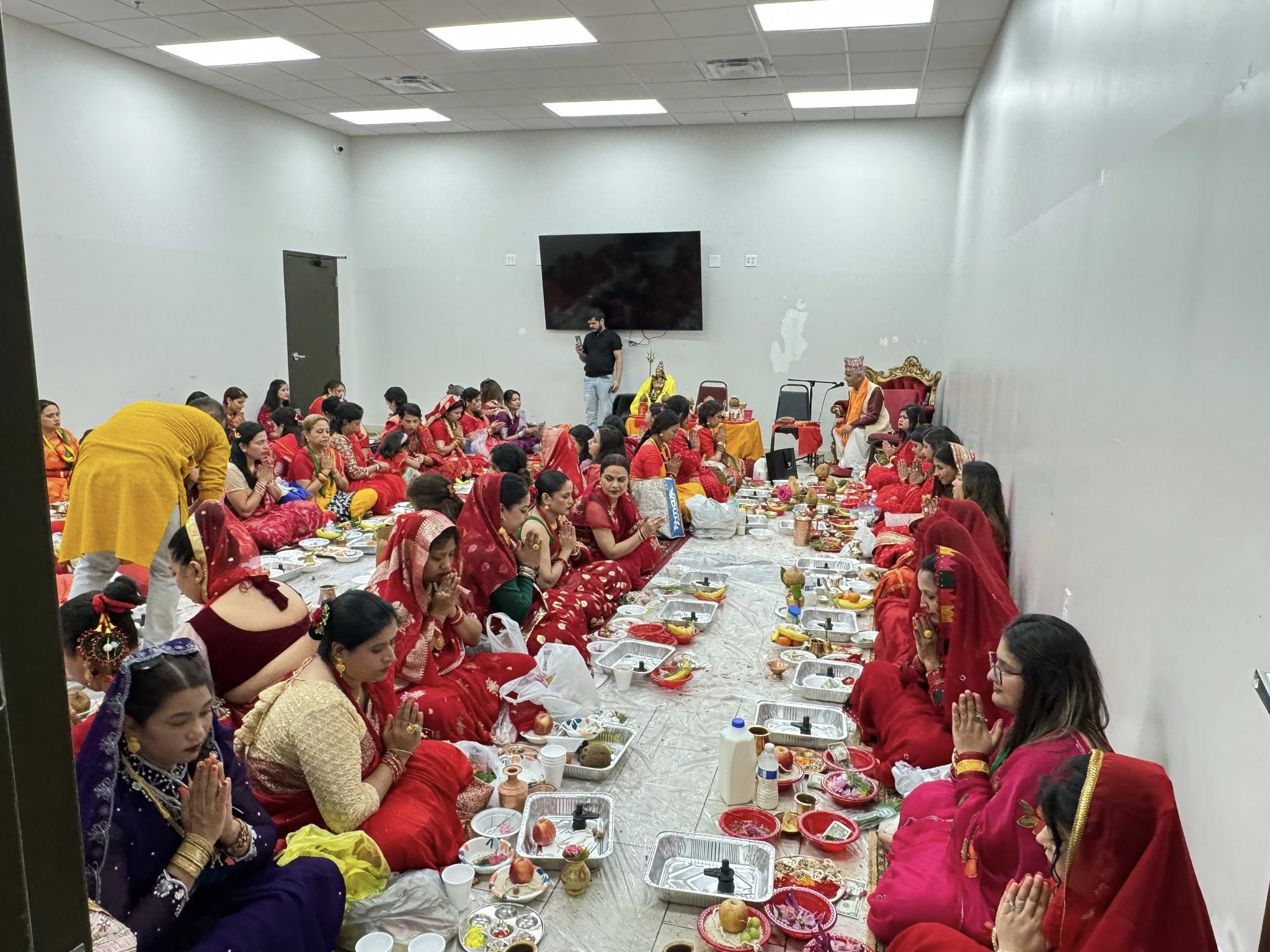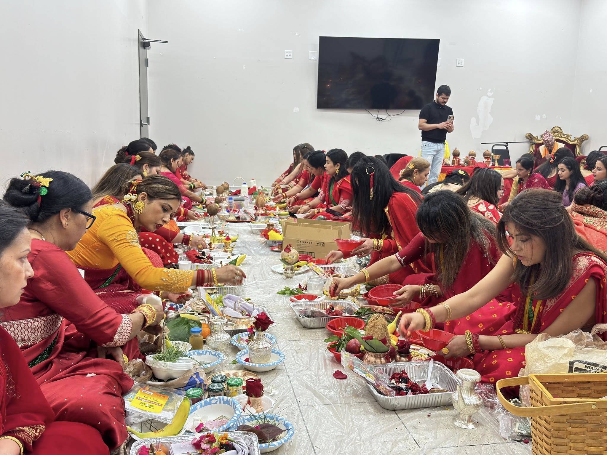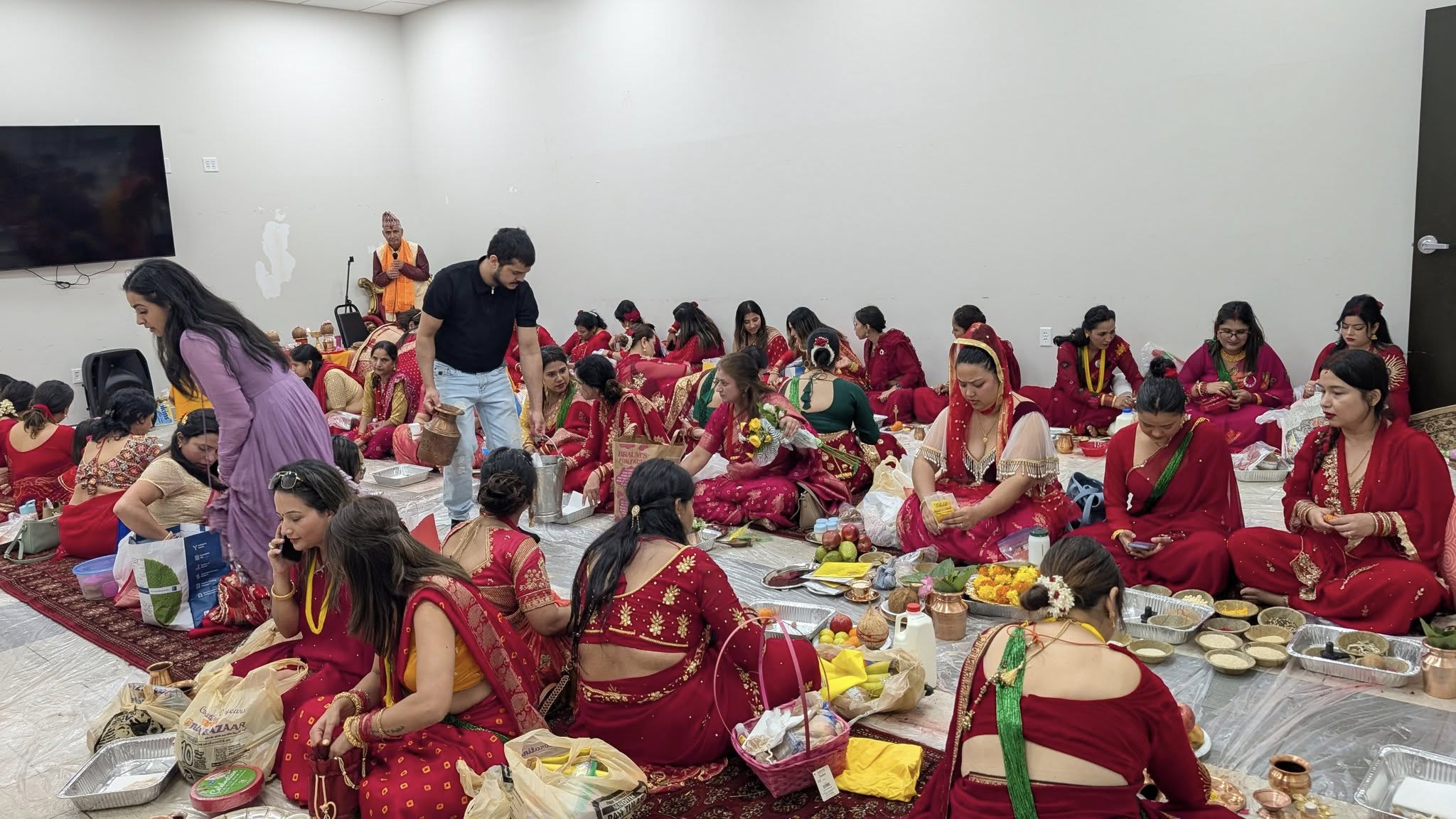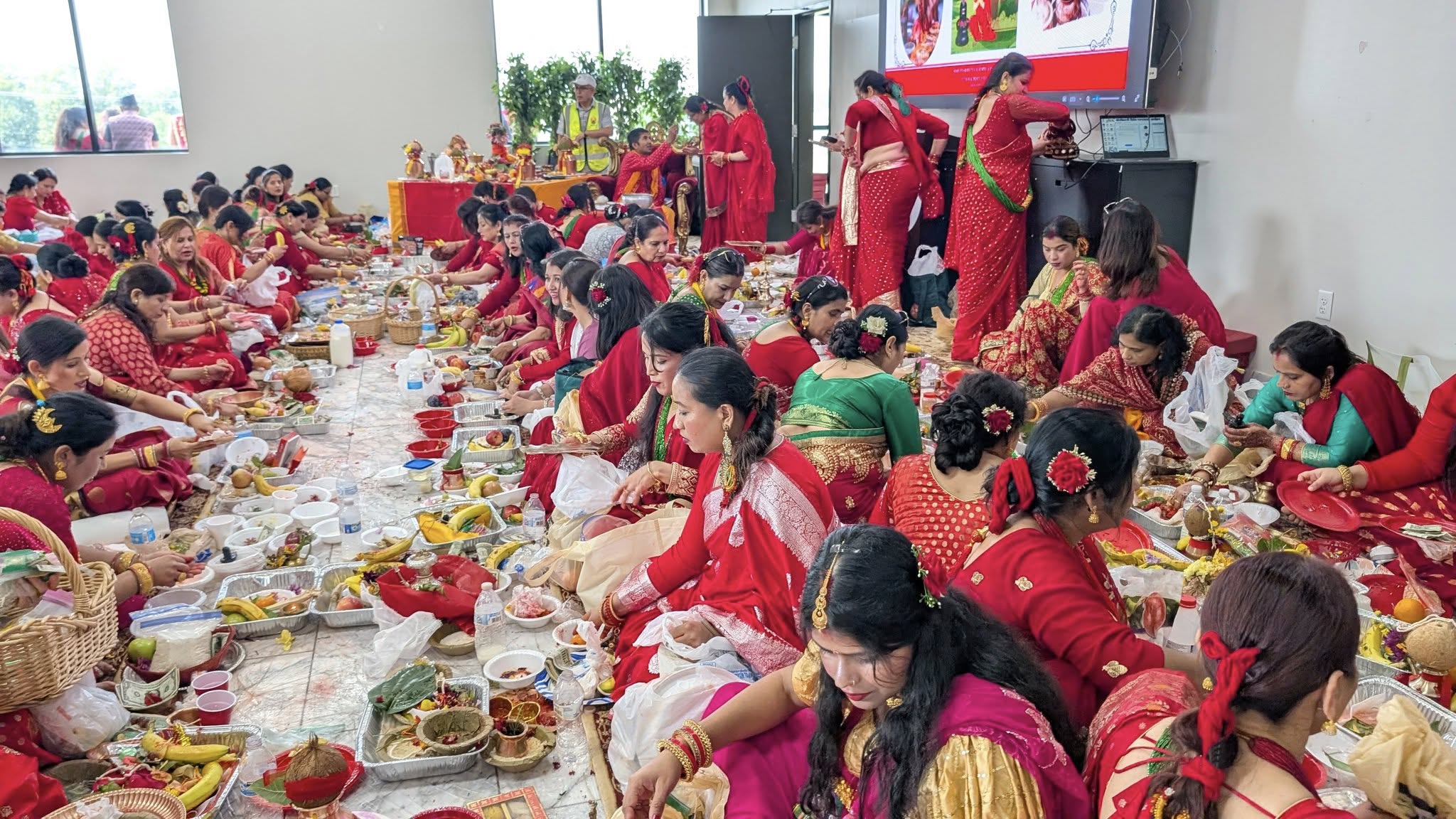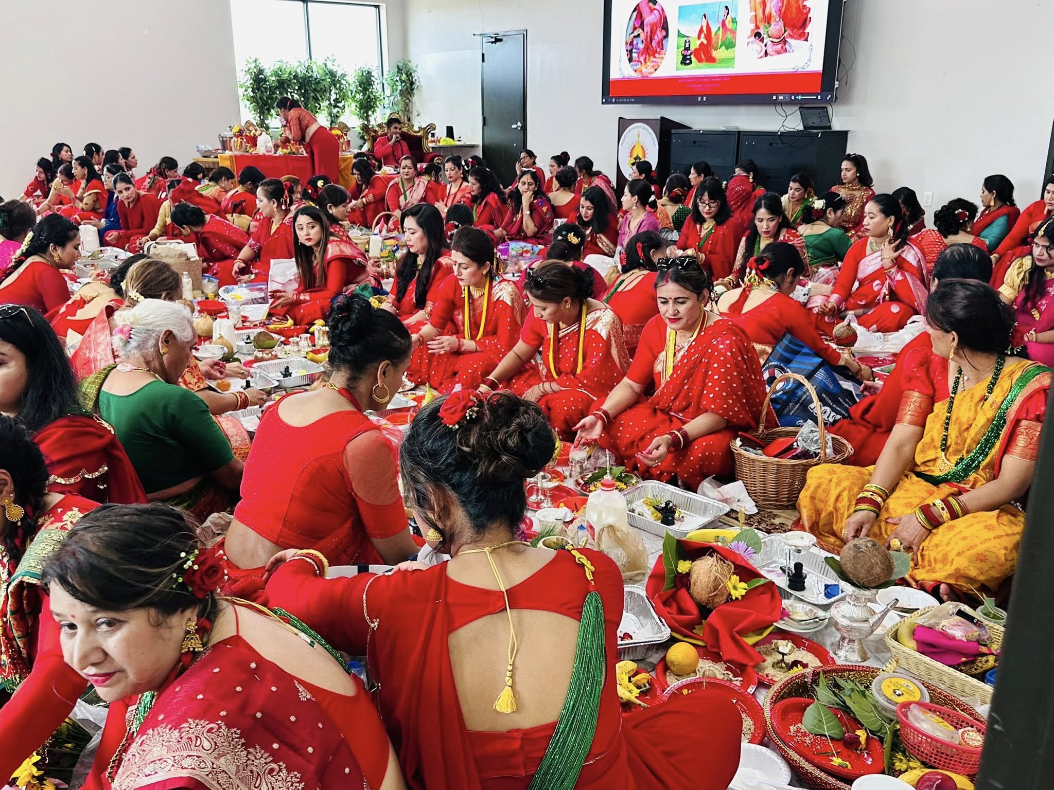 अमेरिकाको ड्लासमा तीजको पूजामा संलग्न व्रतालु महिलाहरू ।