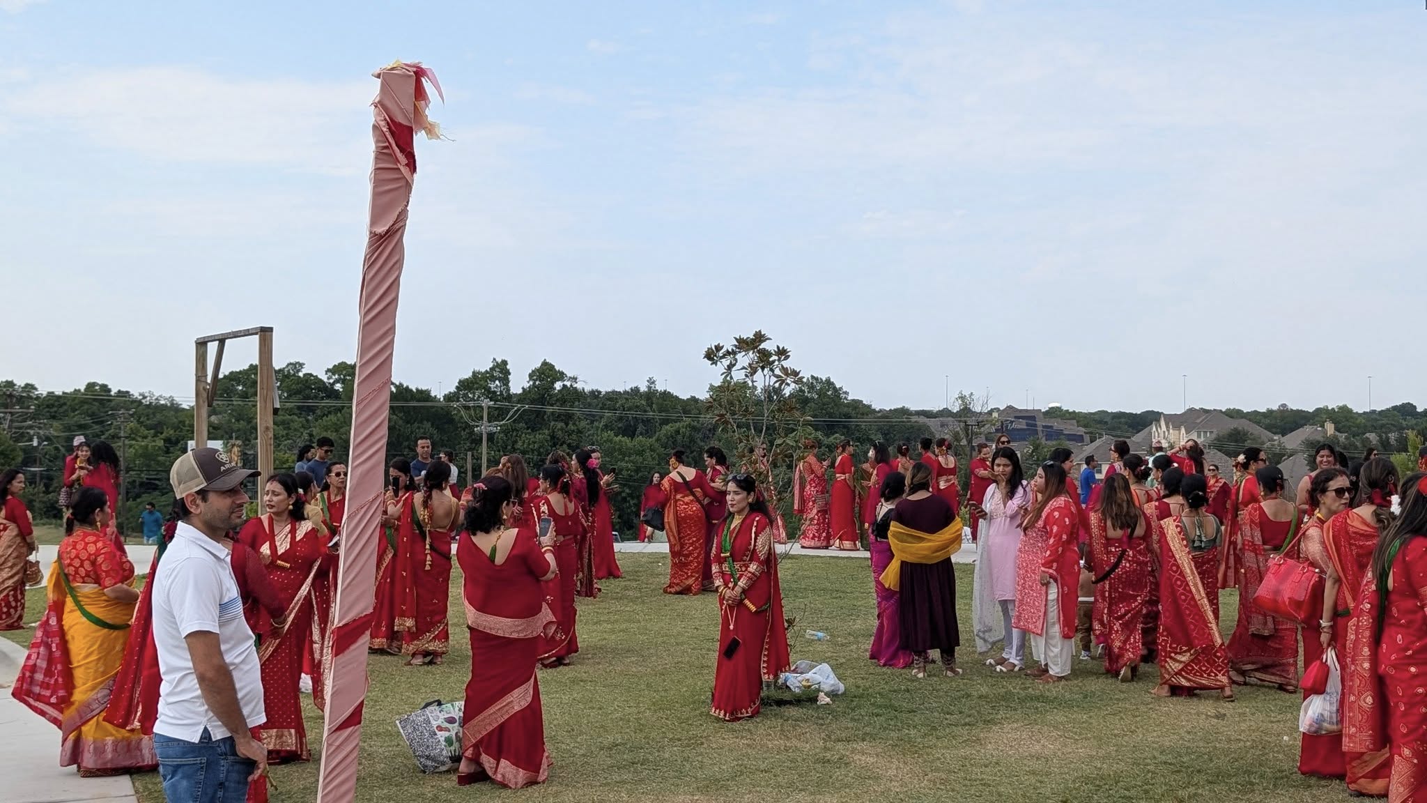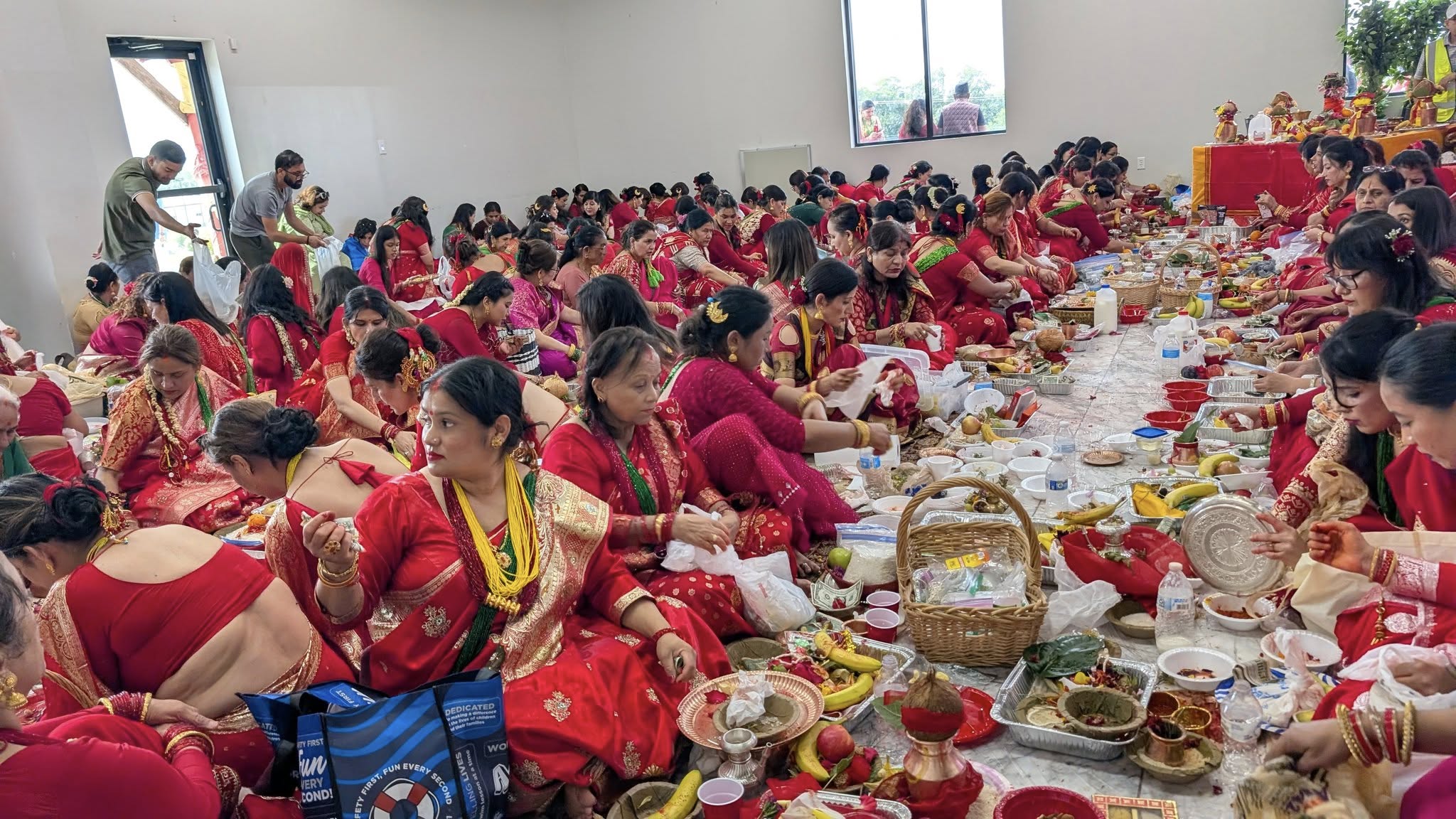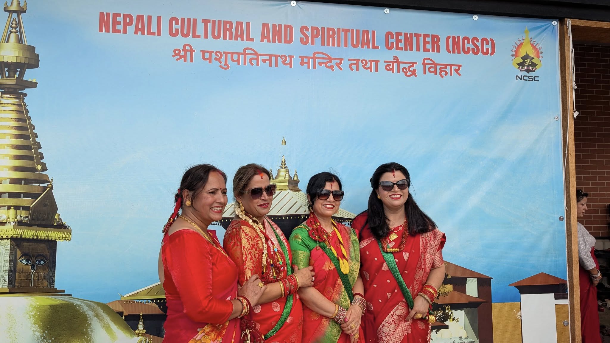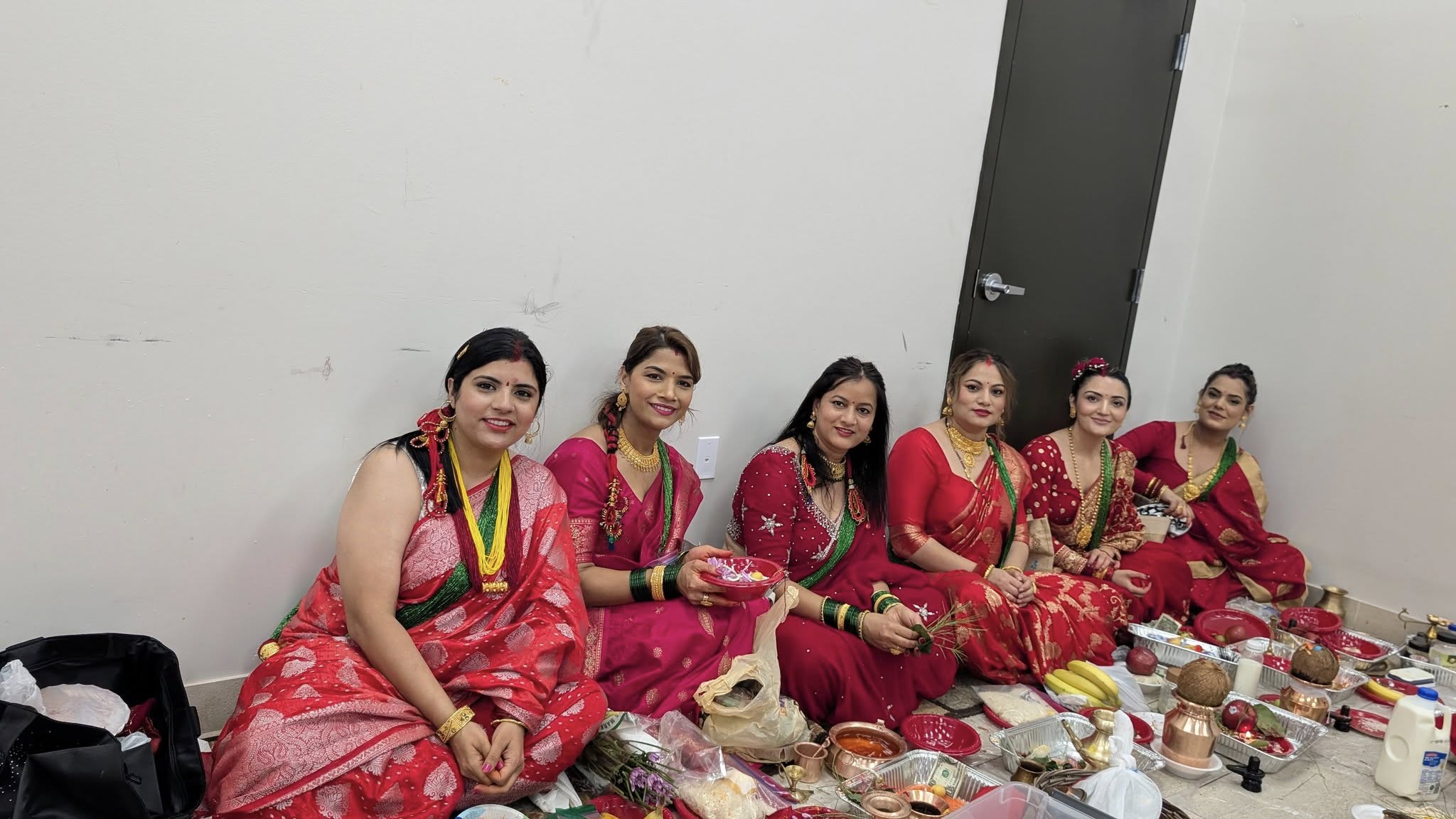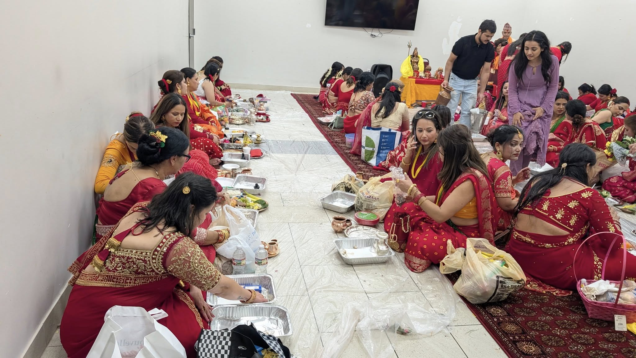अमेरिकाको ड्लासमा तीजको पूजामा संलग्न व्रतालु महिलाहरू ।