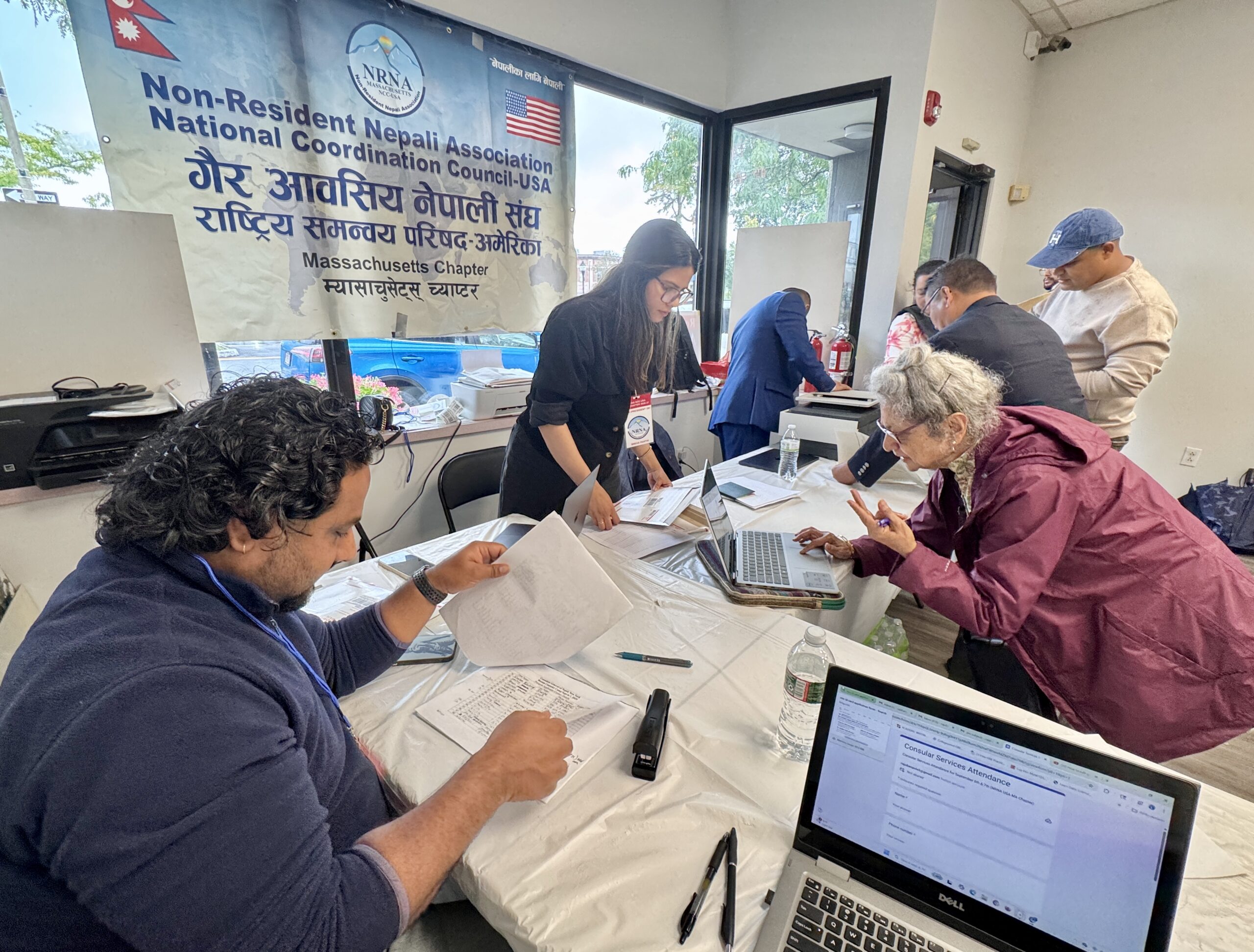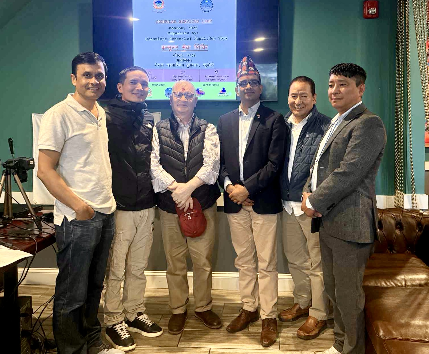 अमेरिका, बोस्टन। अमेरिकाको न्यू योर्क सहर स्थित नेपाली महावाणिज्यदूतावासको कार्यालयद्वारा अमेरिकाको बोस्टनमा सञ्चालित दुइ दिने कन्सुलर सेवा घुम्ती शिविरबाट २०४ जना सेवाग्राहीहरु लाभान्वित भएका छन्। सेप्टेम्बर ६ र ७, २०२५ (शनिवार र आइतवार) सञ्चालित उक्त घुम्ती शिविरबाट राहदानी नविकरण, गैर आवासीय नेपाली परिचयपत्रको आवेदन संकलन, अधिकृत वारेशनामा प्रमाणिकरण (Power of Attorney), कागजात प्रमाणिकरण(Attestation), पर्यटक भिषा जारी(Tourist Visa), अन्य Attestation सम्बन्धी सेवाहरु लिएर सेवाग्राहीहरु लाभान्वित भएका हुन्।