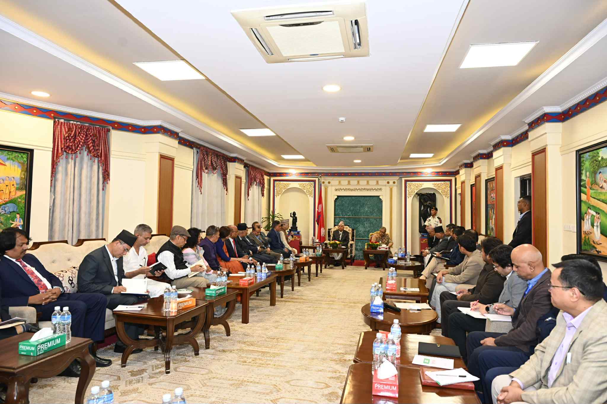 राष्ट्रपति पौडेलले लोकतन्त्रको रक्षाका लागि सबै मिलेर निर्वाचन सम्पन्न गराउनुपर्ने बताए । उनले पौडेलले राजनीतिक दलहरूमा कुनै द्विविधा र अस्पष्टता भए बैठकमा राख्न आग्रह गर्दै निर्वाचनबाहेक अन्य विकल्प खोज्न थालियो भने यसले देशलाई कहाँ पु¥याउँछ भन्ने पनि सोच्न आग्रह गरे ।