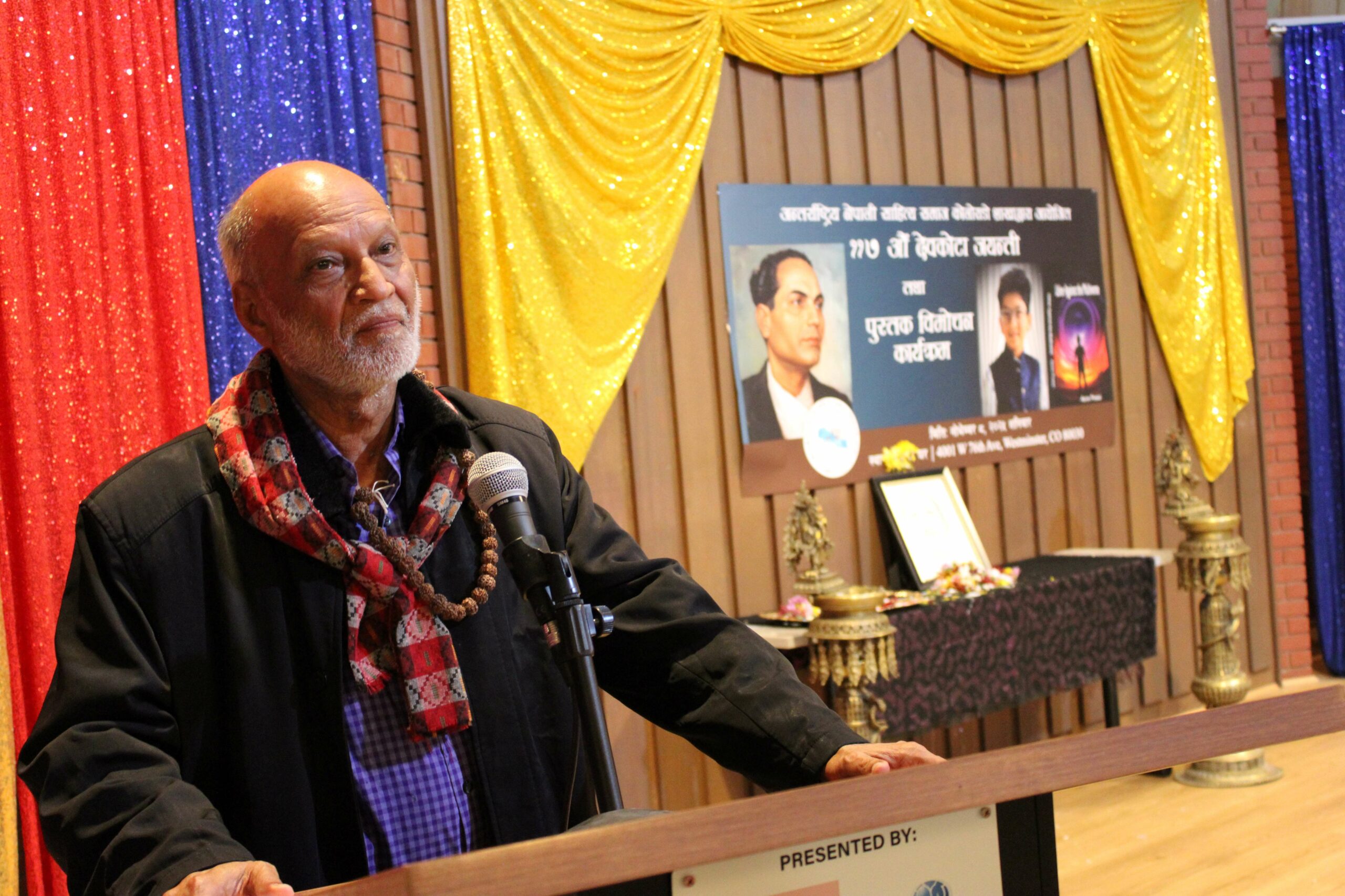 अन्तराष्ट्रिय साहित्य समाज कोलोराडो च्याप्टरद्वारा अयोजित कार्यक्रमा महाकवि देवकोटाको तस्बिरमा पुष्पमाला अर्पण गर्दै कार्यक्रम अगाडी बढाइएको थियो । कार्यक्रममा च्याप्टरका सचिव परिवेश शर्माले स्वागत मन्तव्य प्रस्तुत गर्दै उपस्थित अतिथि, साहित्यकार सबैलाइ स्वागत गरेका थिए ।