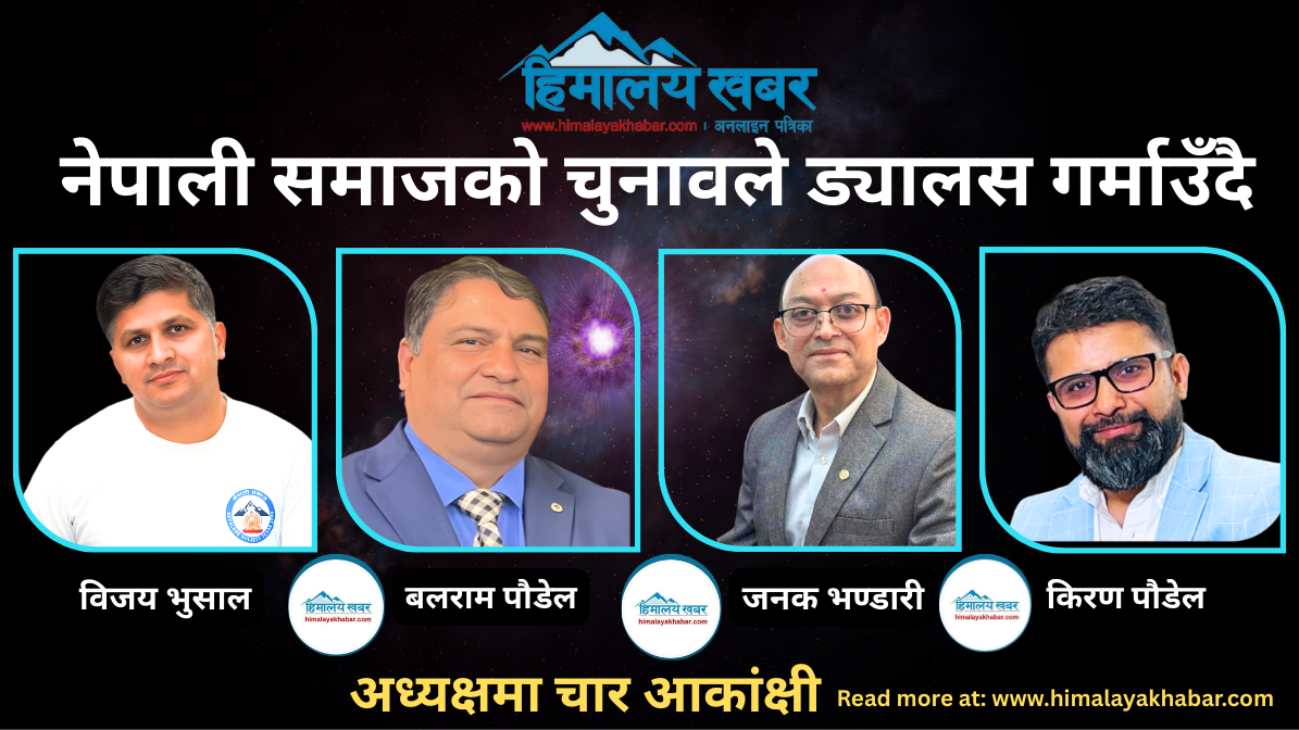 हरेक दुईदुई वर्षमा हुने नयाँ नेतृत्व चयन अन्तरगत यस पटकको चुनाव अझै रोचक र घोचक हुने अनुमान समाजका अगुवाहरुले गरेका छन् । विगत लामो समयदेखि अध्यक्षका लागि दुईजनाको प्रतिस्पर्धा हुने गरेको थियो । तर एक पटक तीनजनाको प्रतिस्पर्धा भएको थियो । तर यसपटक भने अध्यक्षका लागि चार जनाको नाम चर्चामा छ ।