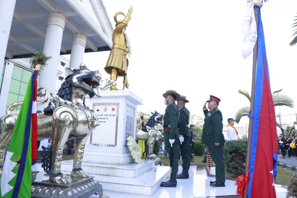 सैनिक मुख्यालय जङ्गी अड्डा परिसरमा रहेको नेपाली सेनाका संस्थापक राष्ट्रनिर्माताको सालिकमा प्रधानसेनापति अशोकराज सिग्देलले पुष्पहार अर्पण गरी उनीप्रति सम्मान व्यक्त गरेका हुन् ।