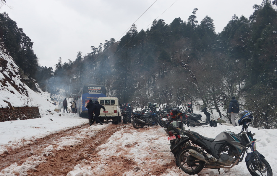 हिमपातका कारण मध्यपहाडी लोकमार्ग अवरुद्ध