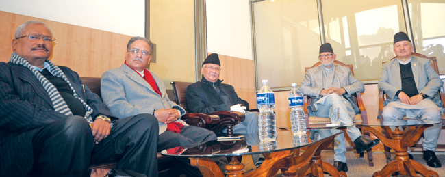 संविधानसभाका अध्यक्ष सुवास नेम्वाङको कार्यकक्षमा आज बसेको नेपाली काँग्रेस, नेकपा (एमाले), एकीकृत नेकपा (माओवादी) र मधेसी जनअधिकार फोरम नेपाल (लोकतान्त्रिक)का शीर्ष नेताको बैठकले त्यसका लागि आवश्यक कार्यतालिका मिलाउन सभाध्यक्षलाई जिम्मेवारी दिएका छन् ।