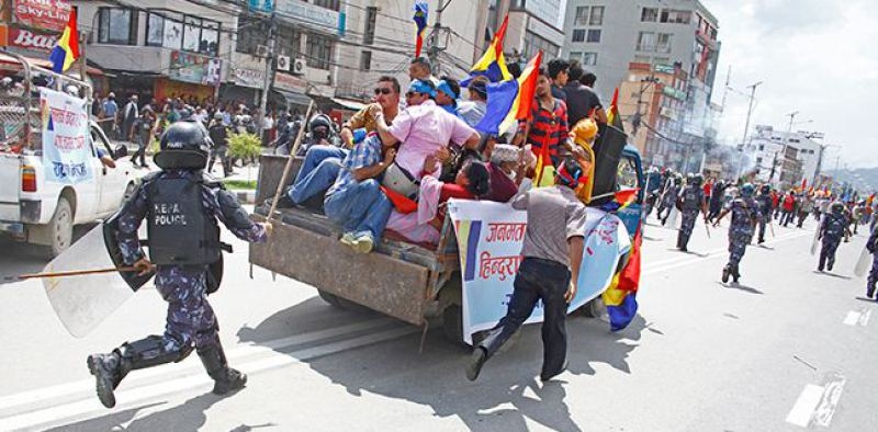काठमाडौँ । राप्रपा (नेपाल)ले जनताले दिएका सुझावलाई नयाँ संविधानमा समेट्न माग गर्दै आज आयोजना गरेको विरोध जुलुसमा प्रहरी हस्तक्षेप भएको छ ।