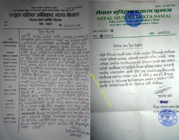 हिजोको जस्तै सानतन हिन्दू धर्मको आडमा हामीमाथि विभेद गर्ने गरी संविधान ल्याउन खोजिएको भन्दै दलित समुदाय वर्षौदेखि आन्दोलनमा रहेकोसमेत विज्ञप्तिमा भनिएको छ ।