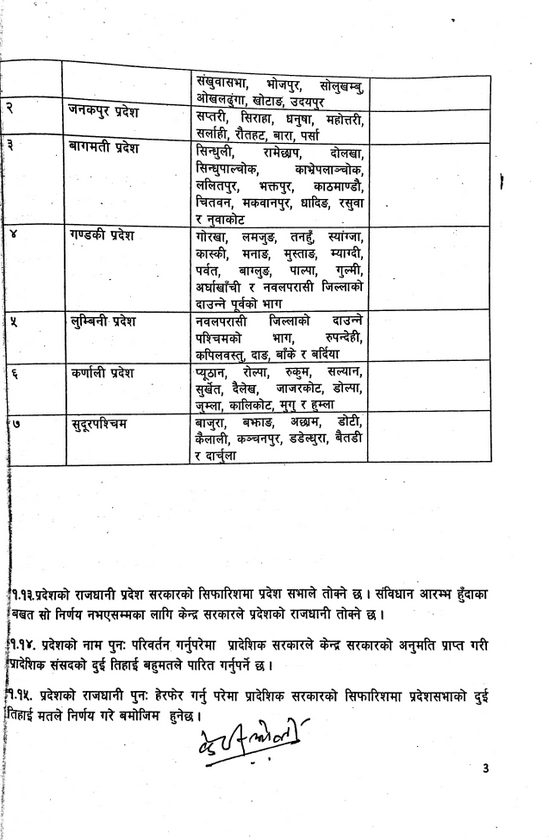 सोही खाकामा पाँच नम्बर प्रदेशमा अहिले टुक्राउन लागिएको भनिएका जिल्लाहरु समावेश छैनन् । जुन अवधारणा पत्रमा नेकपा एमालेका अध्यक्ष केपी शर्माको ओलीको हस्ताक्षर छ । सो पत्रको एक पानामा मान नभई सबै पानारपानामा केपी ओलीको हस्ताक्षर छ ।