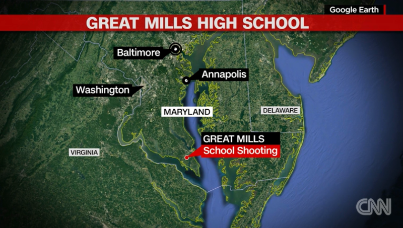 सिएनएनले जनाए अनुसार सेन्ट मेरिज काउन्टीको ग्रेट मिल्स हाइस्कूलमा मंगलबार बिहान गोली प्रहारको घटना भएको हो । प्रहरीले घटनाको बारे अनुसन्धान गरिरहेको छ ।