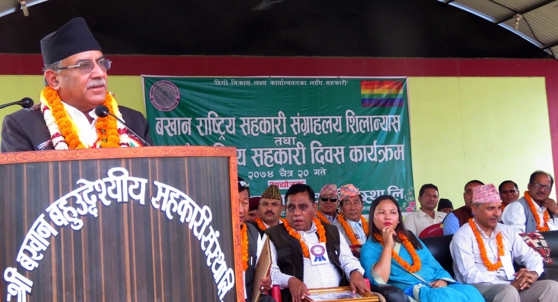 यसअघि नेपालको पहिलो सहकारी संस्था बखान बहुउद्देश्यीय सहकारी संस्थाले शारदानगरमा आयोजना गरेको बखान राष्ट्रिय सहकारी संग्राहलयको शिलान्यास तथा ६१ औँ राष्ट्रिय सहकारी दिवस कार्यक्रममा अध्यक्ष दाहालले देशको विकासका निम्ति सार्वजनिक, निजी र सहकारी क्षेत्रको महत्वपूर्ण योगदान रहेको बताए ।