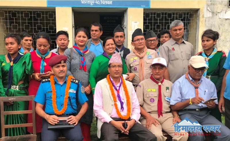 नेपाल स्काउटका जिल्ला आयुक्त तीर्थराज न्यौपानेको अध्यक्षतामा भएको कार्यक्रममा नेपाल स्काउट चितवनका सल्लाहकारसमेत रहेका प्रमुख जिल्ला अधिकारी जितेन्द्र बस्नेत तथा चितवन प्रहरी प्रमुख एसपी सुशीलसिंह राठौरको स्वागत गरिएको हो ।