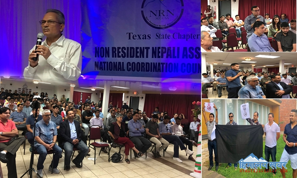 नेपाली कांग्रेस निकट केही व्यक्तिहरूले डा. भट्टराई विरूद्ध नारावाजी गर्नुका साथै कालो व्यानर, झण्डा र प्लेकार्ड देखाएका हुन् । एनआरएन टेक्सस च्याप्टरले स्थानीय नेपाली मन्दिरमा आयोजना गरेको कार्यक्रमको पूर्बसन्ध्यामा कालोझण्डा देखाउनेहरू जनसम्पर्क समिति अमेरिकामा आवद्ध छन्।