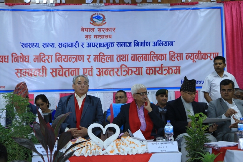 गृहमन्त्रालयद्वारा आयोजित ‘लागूऔषध निषेध, मदिरा नियन्त्रण र महिला तथा बालबालिका हिंसा न्यूनीकरणसम्बन्धी सचेतना एवं अन्तक्र्रिया’ कार्यक्रममा उनले दरिद्रताका कारण नेपाली जनता अहिले पनि दुःखी, पीडित बन्नुपरेको बताए ।