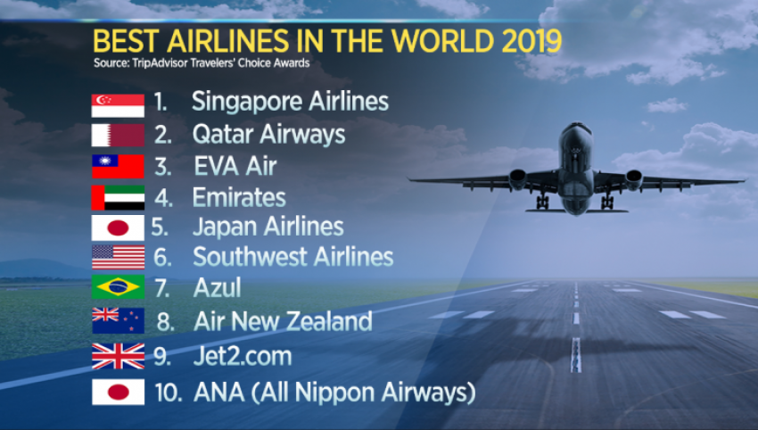 मंगलबार सार्वजनिक गरिएको सूचीमा यात्रीको रोजाईमा एसियाका चार विमान सेवा कम्पनीहरु परेका छन् । साउथवेस्ट एयरलायन्स उत्तर अमेरिकी एयरलायन्समा उत्कृष्ट भएको छ । यसका साथसाथै यो अमेरिकी वायु सेवा कमपनी विश्वकै उत्कृष्ट १० मा पर्न सफल भएको छ ।