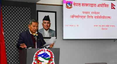 काठमाडौँ । सरकारले मनसुनजन्य विपद्मा परी बेपत्ता भएका व्यक्तिका परिवारलाई मृतकसरह राहत उपलब्ध गराउने निर्णय
