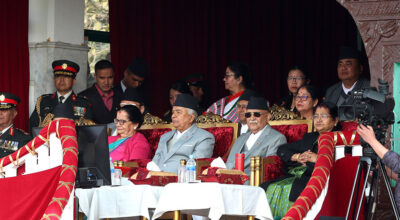 काठमाडौँ । राष्ट्रपति रामचन्द्र पौडेलले महाशिवरात्रि तथा २६१औँ सेना दिवसका अवसरमा नेपाली सेनाद्वारा सैनिक मञ्च