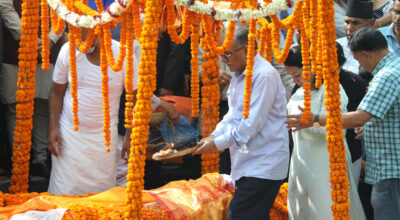 काठमाडौँ । प्रधानमन्त्री पुष्पकमल दाहाल ‘प्रचण्ड’ पत्नी सीता दाहालको राजकीय सम्मानका साथ अन्त्येष्टि गरिएको छ