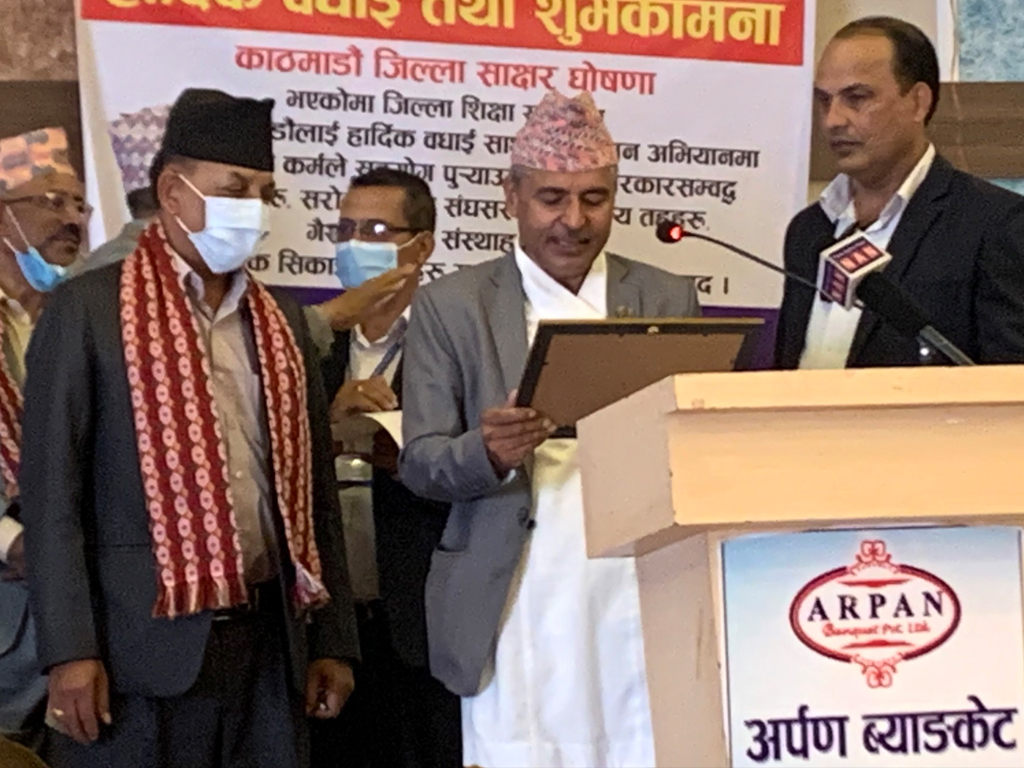 काठमाडौँ । संघीय मुलुकको राजधानी काठमाडौँ जिल्ला बल्ल साक्षर घोषित भएको छ । साक्षर घोषणा