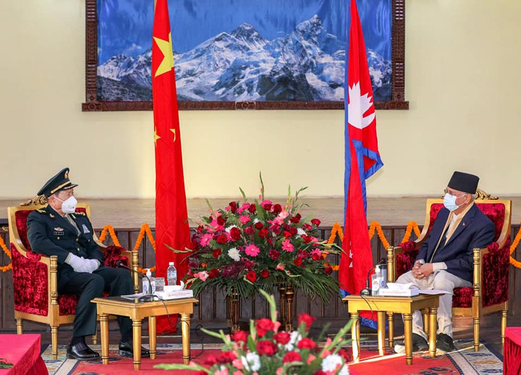 काठमाडौँ । प्रधानमन्त्री केपी शर्मा ओली र नेपाल भ्रमणमा रहेका चीनका रक्षामन्त्री वेइ फेङ्हेले दुई