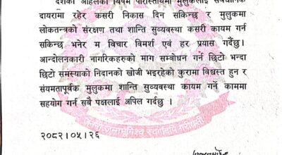 काठमाडौँ । नेपाली सेनाले भ्रामक र झुटा समाचारमा विश्वास नगर्न सबैलाई आग्रह गरेको छ । सैनिक जनसम्पर्क तथा सूचना निर्देशनालयले शुक्रबार एक विज्ञप्ति जारी गरी विद्यमान परिस्थितिमा सेनालाई जोडेर विभिन्न प्रकारका टीकाटिप्पणी, धारणा र विश्लेषण सम्प्रेषण भएको भन्दै यस्तो आग्रह गरेको हो । सेनाले आफ्नो धारणा र गतिविधि नियमित रूपमा प्रेस विज्ञप्ति, प्रेस नोट र…