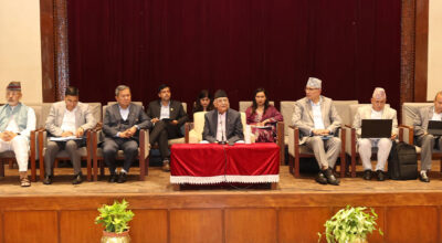 काठमाडौँ । नेपाली कांग्रेसका सभापति एवं पूर्वप्रधानमन्त्री शेरबहादुर देउवाले मुलुकमा प्रजातन्त्र स्थापनाका लागि योगदान पुर्याउने व्यक्तिहरुको योगदानलाई देशव्यापी रुपमा प्रचार गर्नुपर्ने बताएका छन्। आज भक्तपुरमा सहिद राधेश्याम जोन्छे स्मृति प्रतिष्ठानले आयोजना गरेको जोन्छेको १३औँ स्मृतिसभा एवं प्रतिष्ठानको नवनिर्मित भवन उद्घाटन तथा जोन्छेको शालिक अनावरण गर्दै उनले जोन्छेले प्रजातन्त्र प्राप्तिका लागि ठूलो योगदान दिएको चर्चा गरे।…