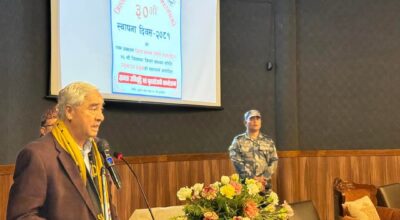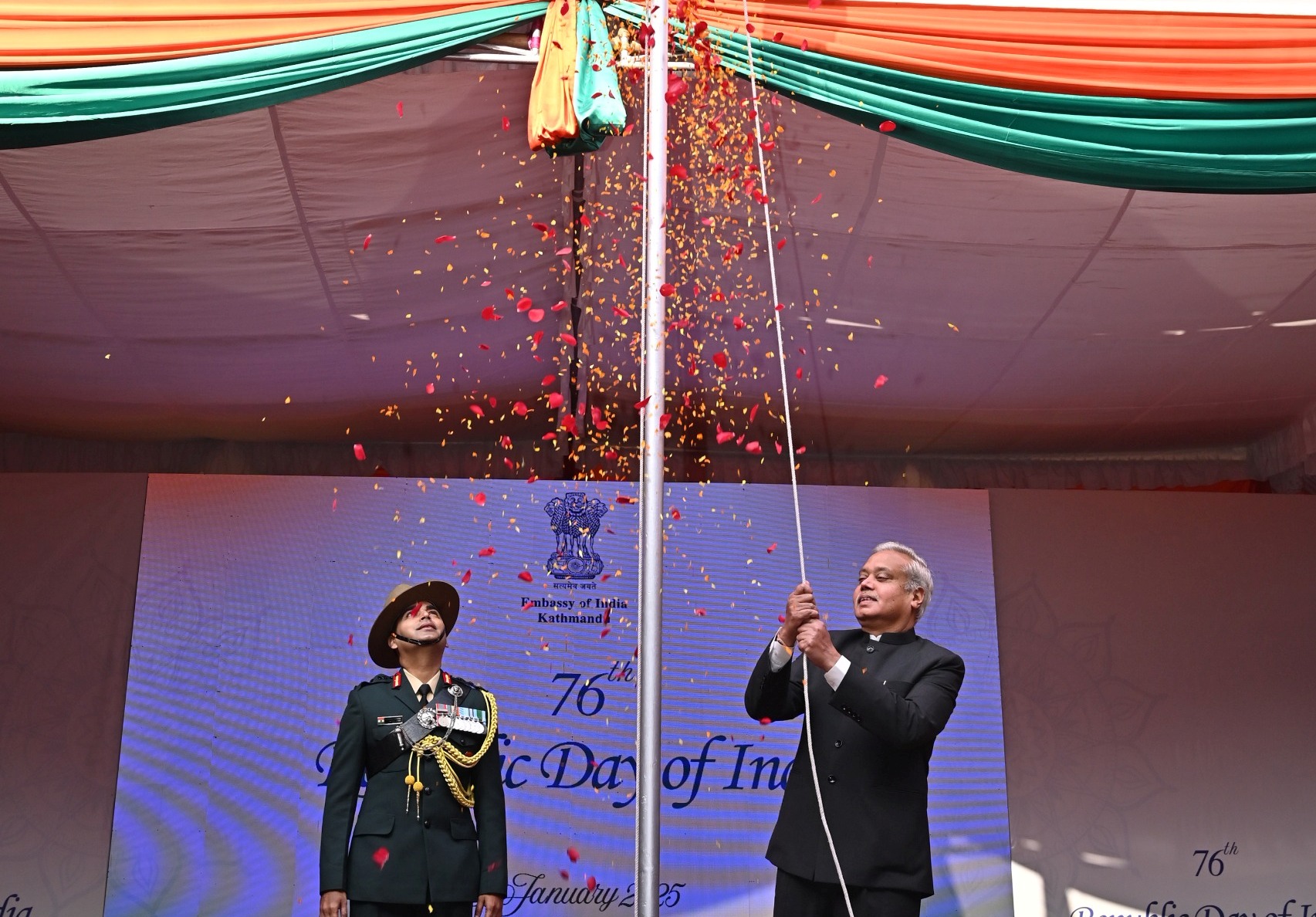 काठमाडौँ । भारतको ७६औँ गणतन्त्र दिवस यहाँस्थित भारतीय दूतावासले विभिन्न कार्यक्रम गरी मनाएको छ । आक्ष्तबार दूतावासमा आयोजित एक समारोहमा नेपालका लागि भारतीय राजदूत नवीन श्रीवास्तवले भारतको राष्ट्रिय झण्डा फहराउनाका साथै नेपालमा रहेका भारतीयहरूलाई शुभकामना व्यक्त गरे । कार्यक्रममा भारतका राष्ट्रपति श्रीमती द्रौपदी मुर्मूले राष्ट्रका नाममा गरेको सम्बोधन प्रत्यक्ष प्रसारण गरिएको थियो । त्यस अवसरमा…