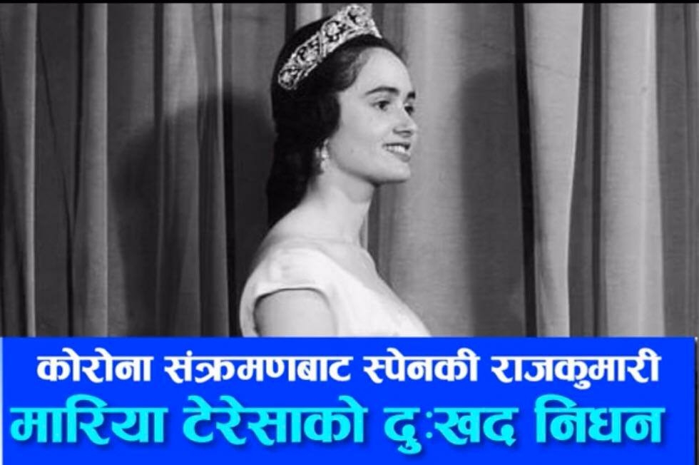 स्पेन- स्पेनकी पूर्व उपप्रधानमन्त्री समेत रहेकी राजकुमारी मारिया टेरेसाको कोरोना संक्रमणबाट मृत्यु भएको छ ।८६ बर्षिया टेरेसाको कोरोना भाईरसको संक्रमणका कारण आज निधन भएको उनका भाई हेनरीको हवाला दिँदै स्पेनका सञ्चारमाध्यमहरुले जनाएका छन् । त्यस्तै उनको मृत्यु भएको डेली मेलले समेत पुष्टिगरेको छ ।मारिया टेरेसाको आफ्नै सन्तान नभए भाञ्जा भाञ्जीको साहारामा रहेकी थिइन । कोरोना…
