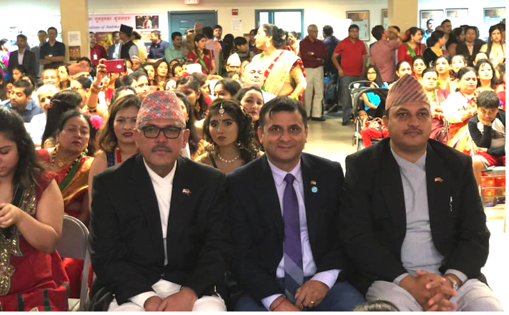 अन्तर्राष्ट्रिय कलाकार मञ्च, अमेरिका र अन्तर्राष्ट्रिय नेपाली साहित्य समाज वासिङ्टन डिसी मेट्रो कमिटीको संयुक्त आयोजना । दुई दिन देखिको लगातार वर्षा, तर पनि अमेरिकामा रहेका दिदी बहिनीको मुहारमा छाएकै थियो हर्ष । वासिङ्टन डिसी नजिकै भर्जिनिया अवस्थित दुर्गा मन्दिरको ठुलो सभा हल खचाखच भरिएको थियो । त्यहाँको वातावरण देख्दा लाग्थ्यो – हामी नेपाल मै छौँ…