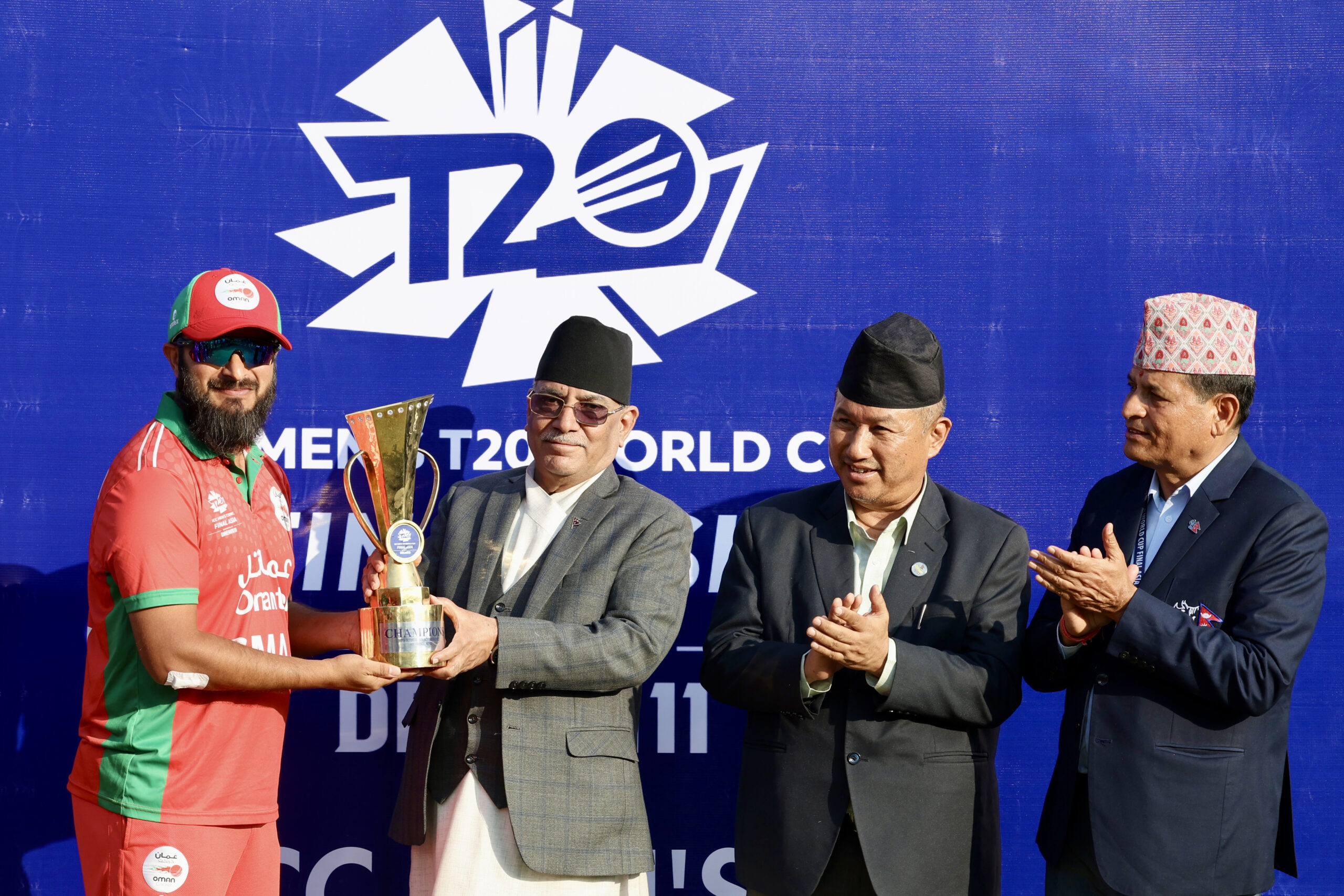 काठमाडौँ । आइसिसी ट्वान्टी २० विश्वकप एसिया क्षेत्र छनोट प्रतियोगिताको उपाधि ओमानले जितेको छ । कीर्तिपुरस्थित त्रिभुवन विश्वविद्यालयको अन्तर्राष्ट्रिय क्रिकेट मैदानमा आज भएको फाइनलमा नेपाललाई सुपर ओभरमा पराजित गर्दै ओमानले उपाधि हात पारेको हो । निर्धारित २० ओभरको खेल बराबरीमा टुङ्गिएपछि खेल सुपर ओभरमा पुगेको थियो । सुपर ओभरमा पहिले ब्याटिङ गरेको ओमानले २१ रन…